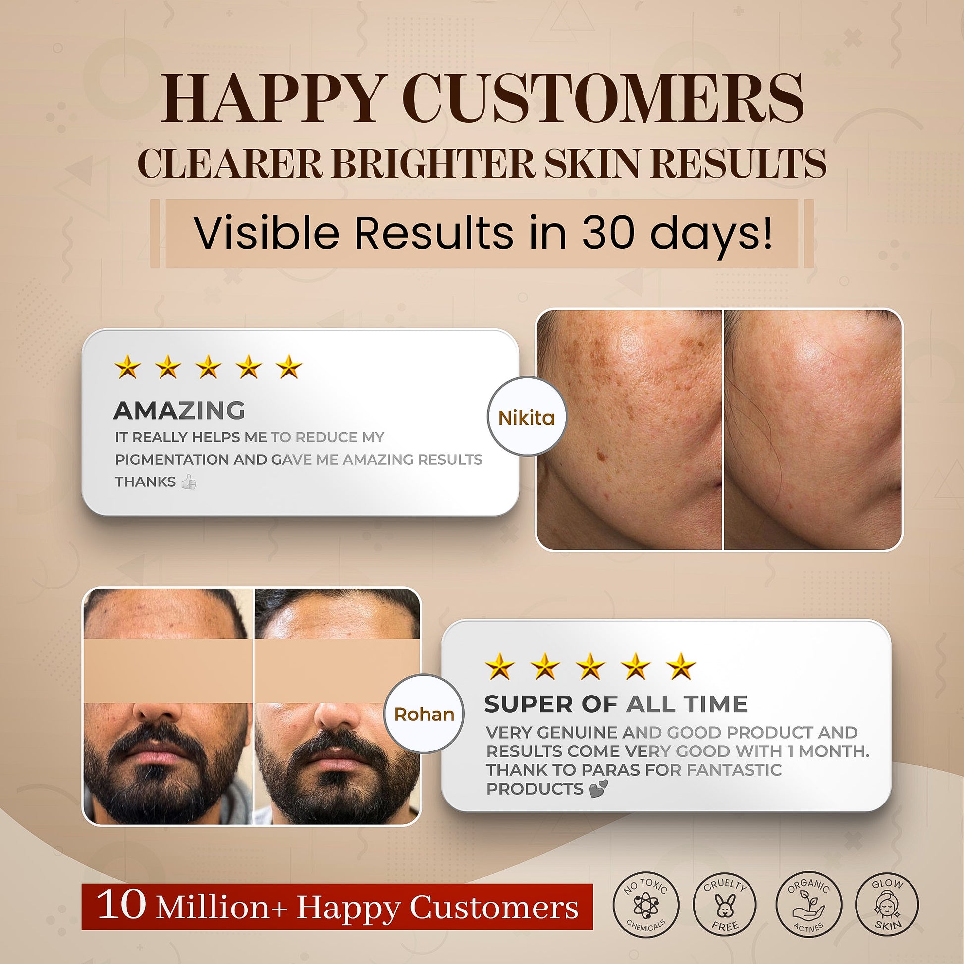 The time it takes to see results can vary depending on the severity of the pigmentation and the individual's skin type. Generally, it may take 5-6 few weeks. Patience and regular application are key.
