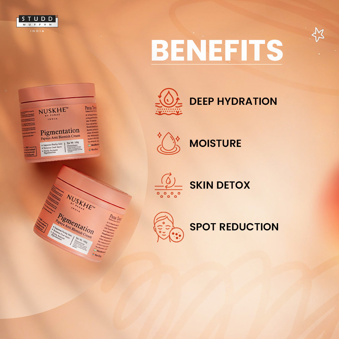 Unleash your vibrant beauty with us With the retinol-boosting sweetness of papaya and its Ayurvedic benefits, let's get that pigmentation under control. Use liberally morning and night for effects you can see in a few weeks. Our Ayurvedic Pigmentation Papaya anti-Blemish Cream is a Premium Formula to support Get Rid of Unnatural Skin Spots Caused by Acne, Pimples, Pigmentation, Under Arm Spots, Blemishes, Under Eye Dark Circles, and Other Conditions.