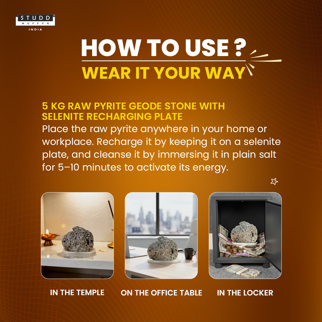 5 Kg Raw Pyrite Geode Stone With Selenite Recharging Plate