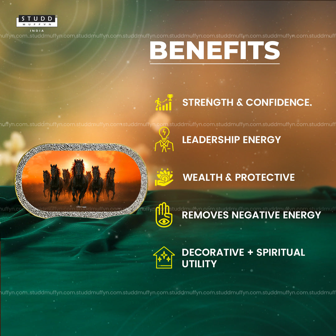 Harness the unstoppable force of progress and victory with the powerful imagery of Seven Black Horses. Unlike white horses that symbolize peace and calm, black horses embody fearlessness, strength, and resilience.