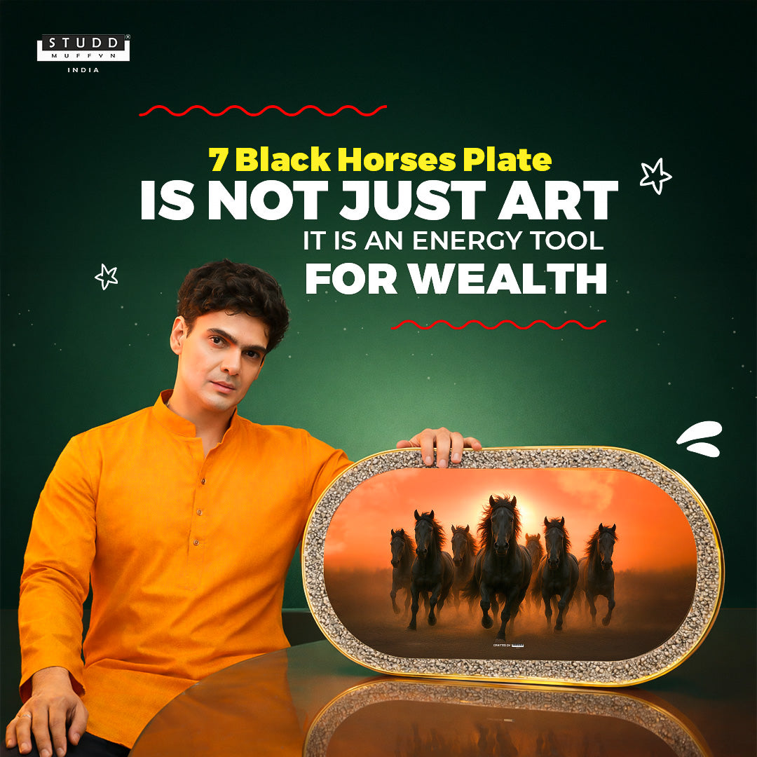 In Vastu, seven horses represent the Sun God’s chariot, bringing speed, growth, and unstoppable momentum. The black form amplifies this energy, signifying determination, courage, and the ability to overcome obstacles. Placed in a home or workplace, this plate channels power to break through barriers and move towards success with unwavering confidence.