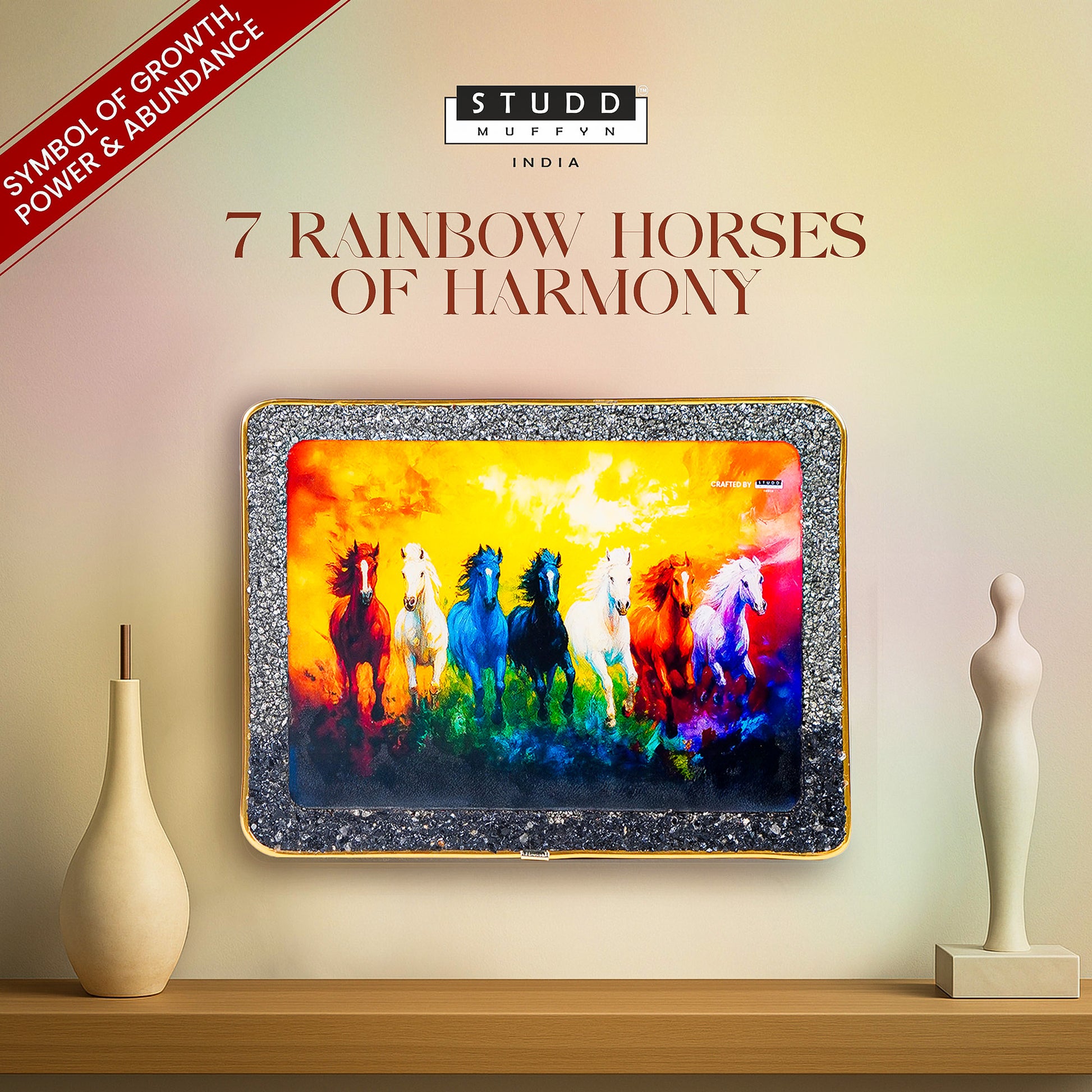 Bring home unstoppable progress, divine flow, and vibrant positivity with the 7 Rainbow Horses of Harmony โ an exclusive masterpiece from Studd Muffyn Crystal Safari, under the Studd Muffyn Crystal Homes Series.
