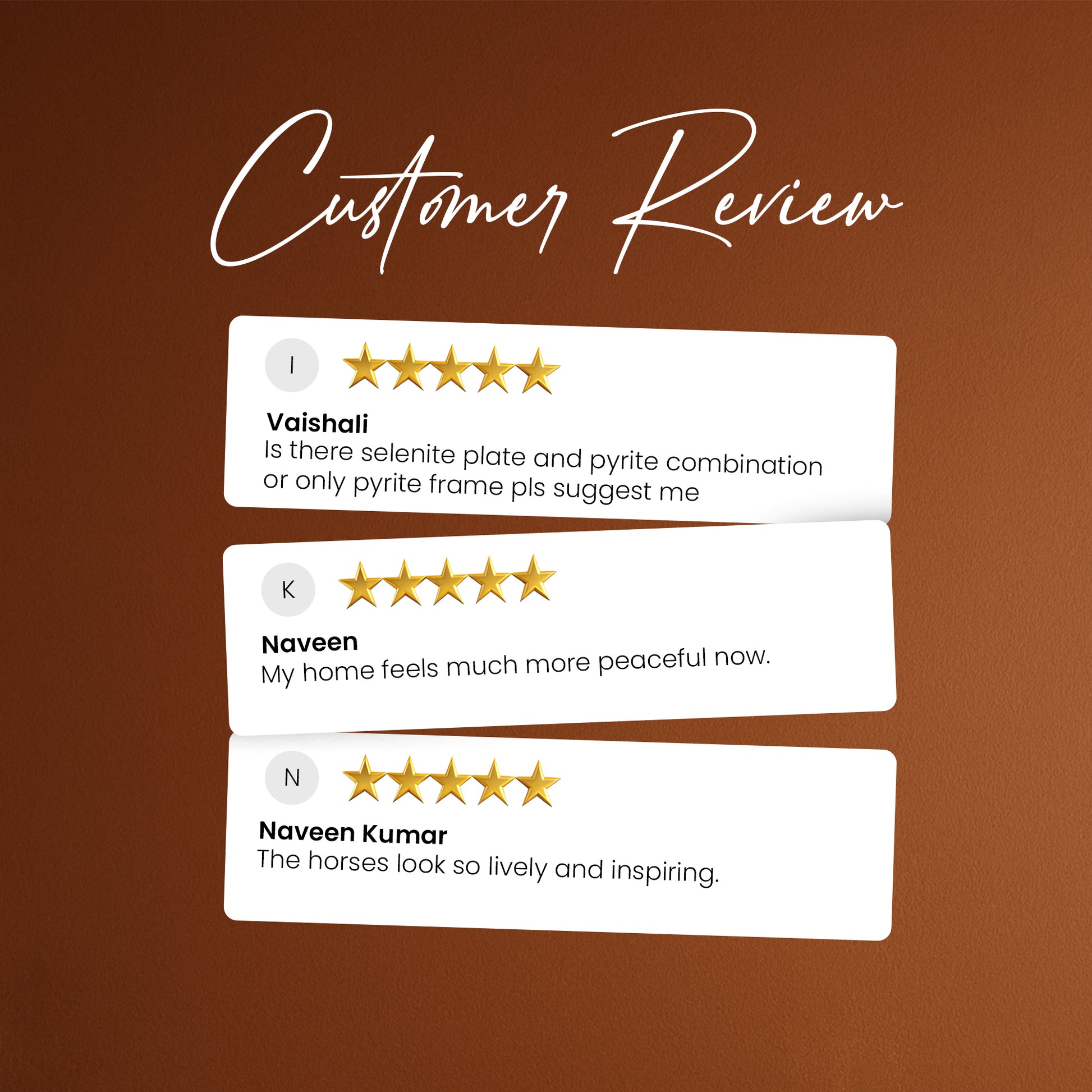 The fusion of Vastu symbolism and healing crystal energy makes this Pyrite Seven Horses Plate a perfect talisman for those seeking progress in business, career, and personal growth.