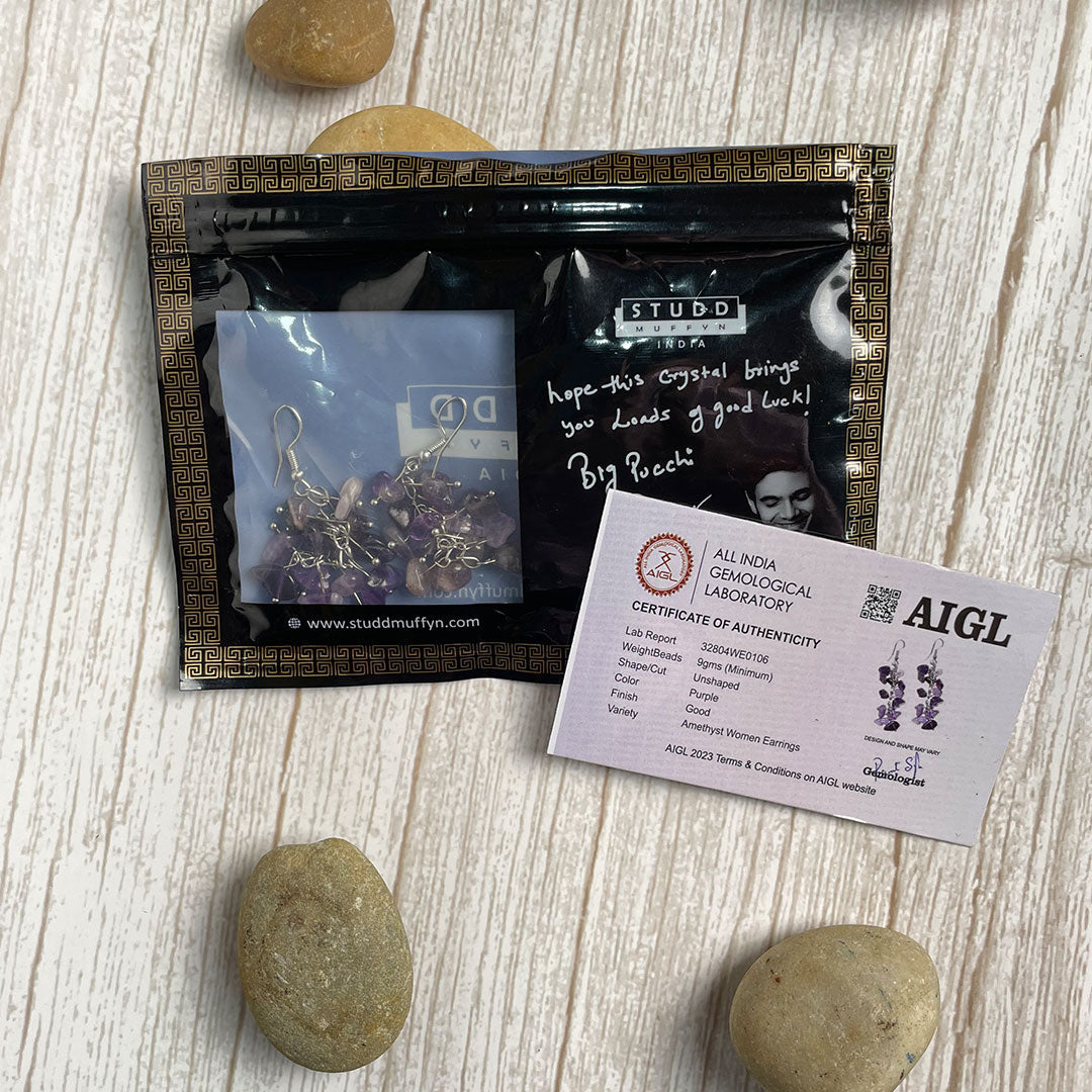 Perfect for adding a dash of whimsy to any ensemble, these earrings dangle gracefully, catching the light and exuding an aura of elegance and mystery. Whether you're dressing up for a night out or infusing your everyday look with a bit of magical charm, these amethyst beauties promise to turn heads and spark conversations. Embrace the power of purple and let your inner goddess shine!