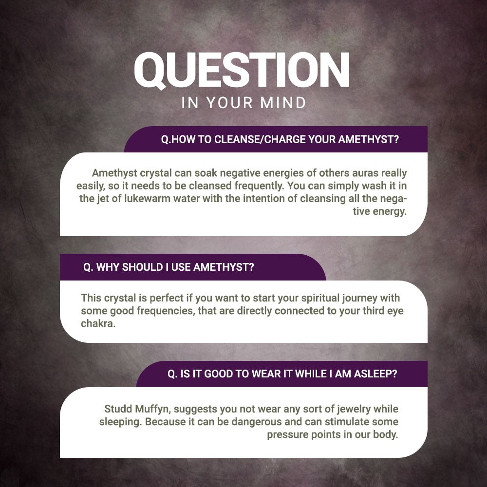 Once you receive your Amethyst, it is important you do a cleansing and activating ritual to make this crystal YOURS! For that, we recommend either keeping it immersed in salt water for 5-10 minutes or smudging it with camphor and clove or sage.