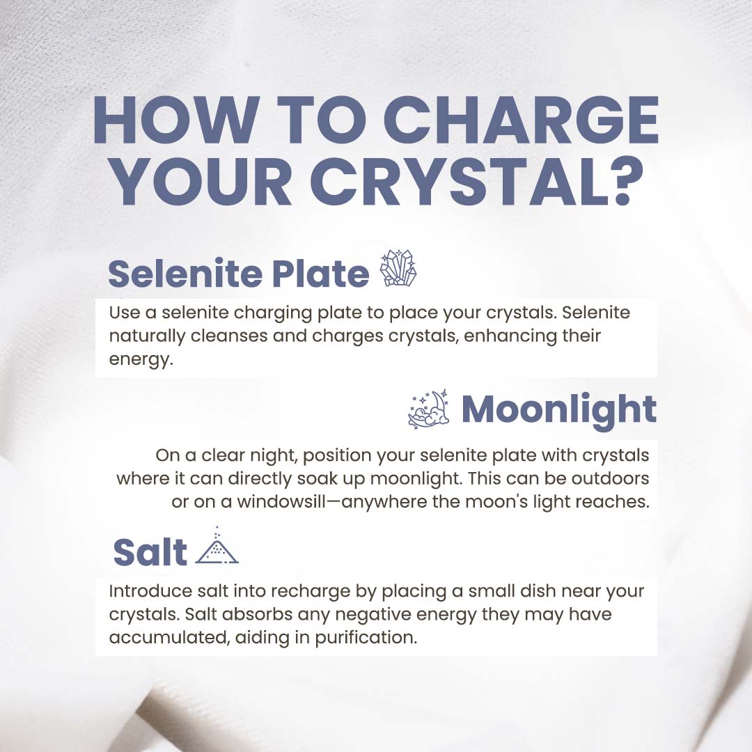 ✬ Recharge: The best way to do that is to keep them in a place that gets moonlight, overnight. You can also put the crystal in salt for at least 15-20 minutes on normal nights.