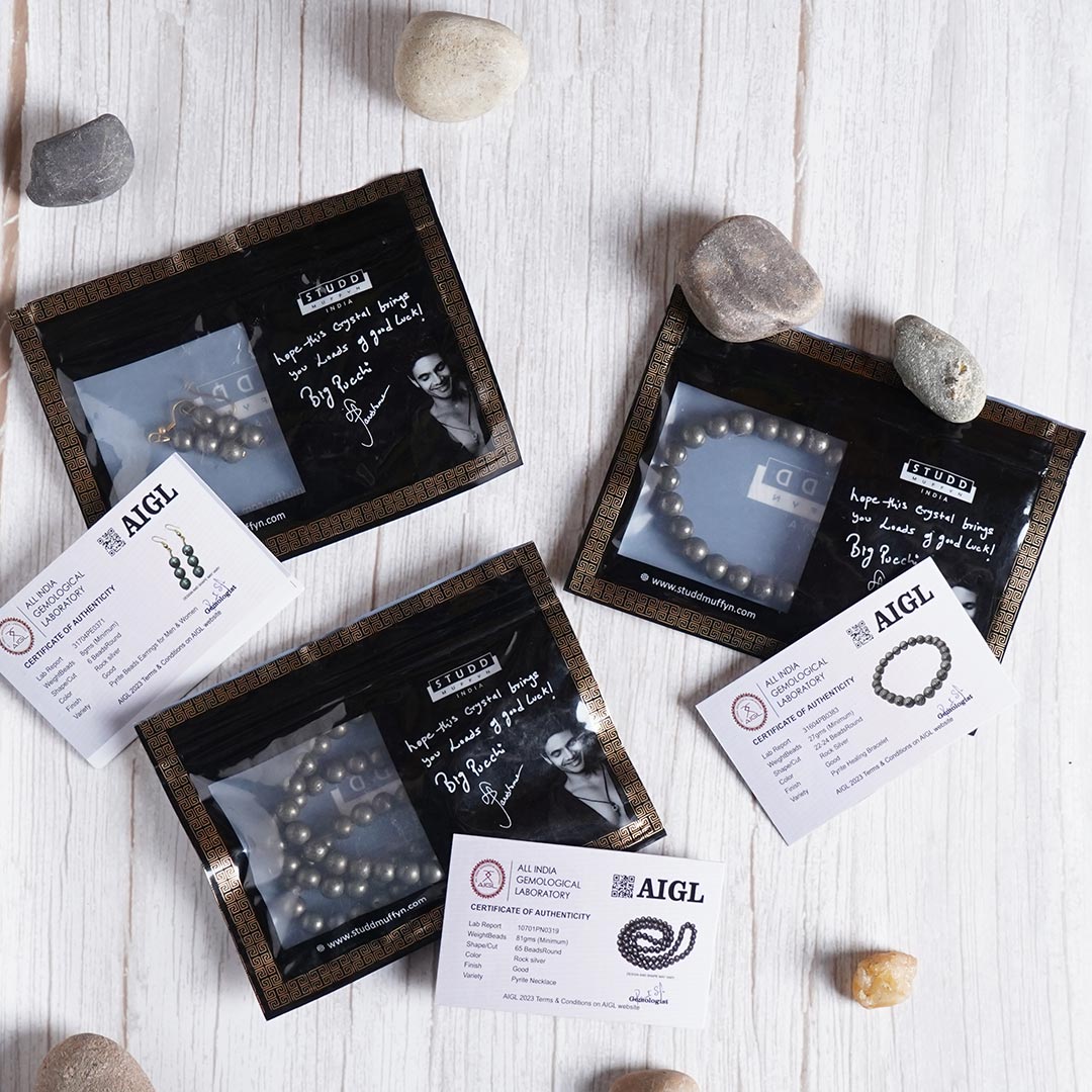 NOTE: The pyrite jewels on our website are completely natural and raw because we don't polish the crystals so that they can create a barrier against negative energies and promote pure physical and spiritual healing.