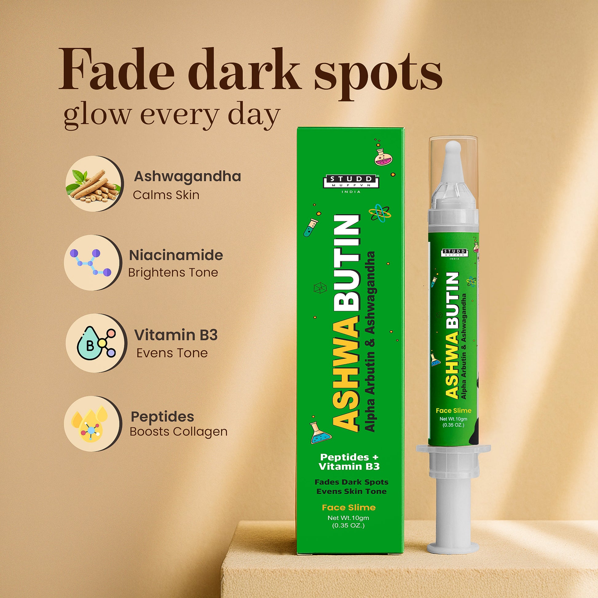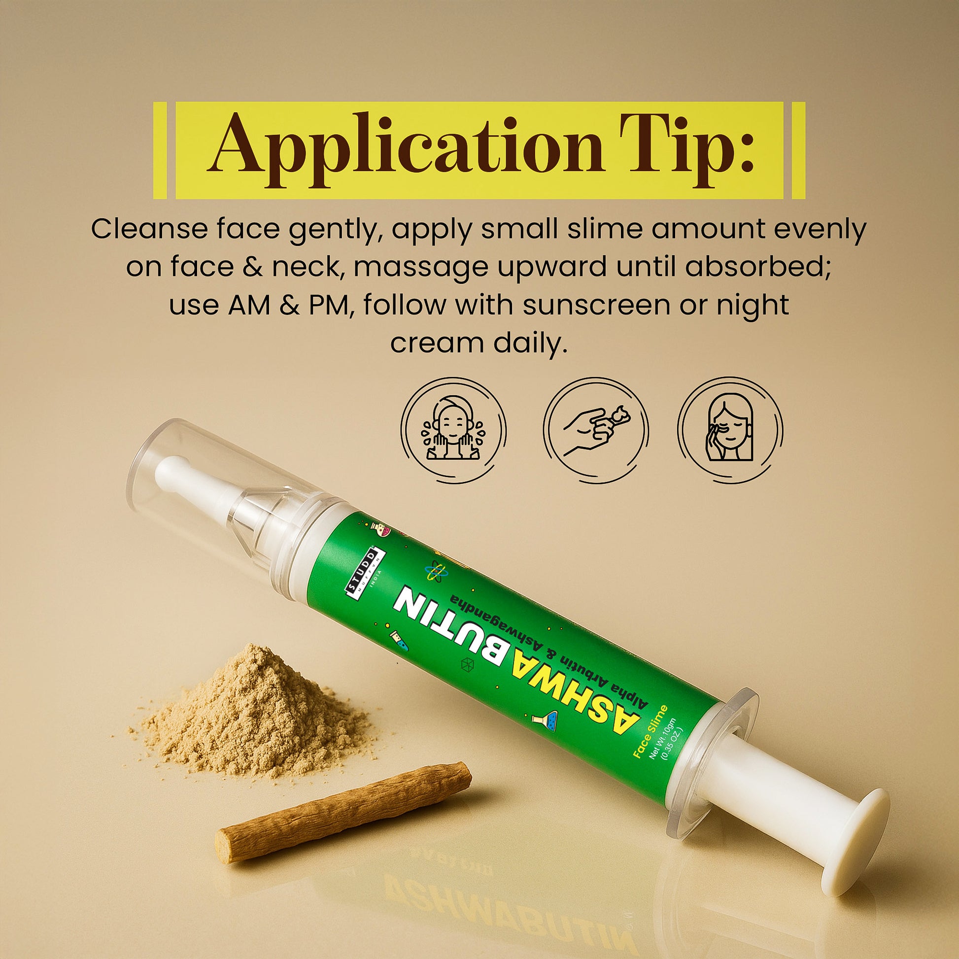 A powerhouse formula that blends ancient adaptogens with modern skincare science. The Ashwabutin Face Slime is enriched with Peptides, Ashwagandha, Alpha Arbutin, and Vitamin B—crafted to target pigmentation, stress-induced skin damage, and dullness while restoring a youthful, radiant glow.