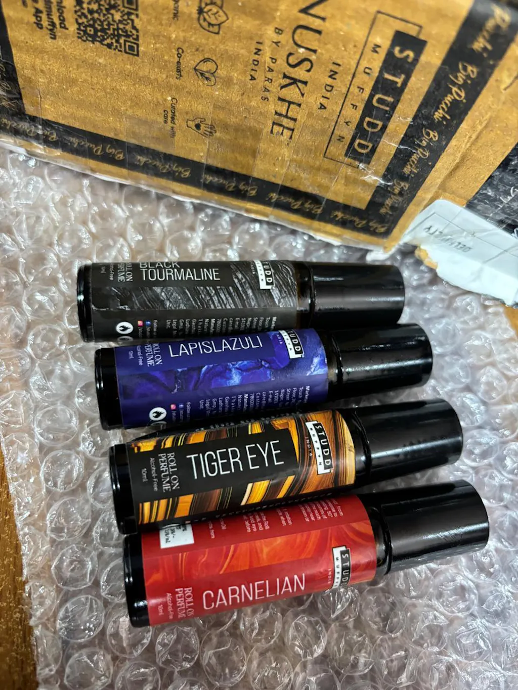 Elevate your energy with the Divine Crystals Pack, a mystical blend of fragrances infused with the essence of four powerful crystals—Tiger Eye, Lapis Lazuli, Black Tourmaline, and Carnelian. Designed for those who seek balance, protection, and empowerment, each scent resonates with the unique energy of its crystal, bringing harmony to your aura.