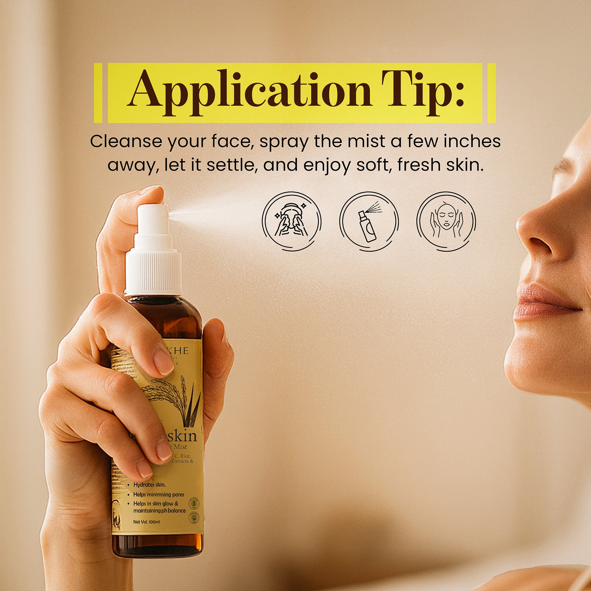 2-Hold the bottle a few inches away from your face and spray the mist on your skin