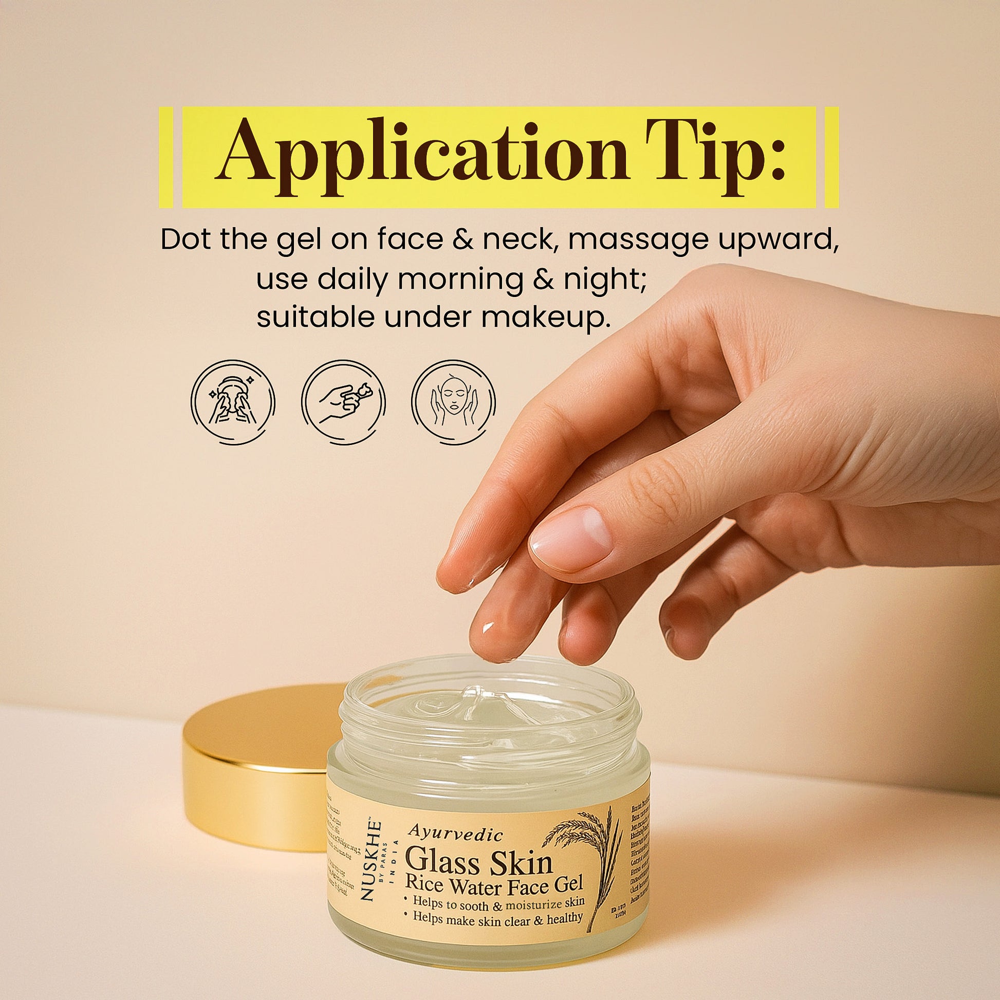 1-Dot the Gel on your Face and Neck & Massage in an upward motion.
