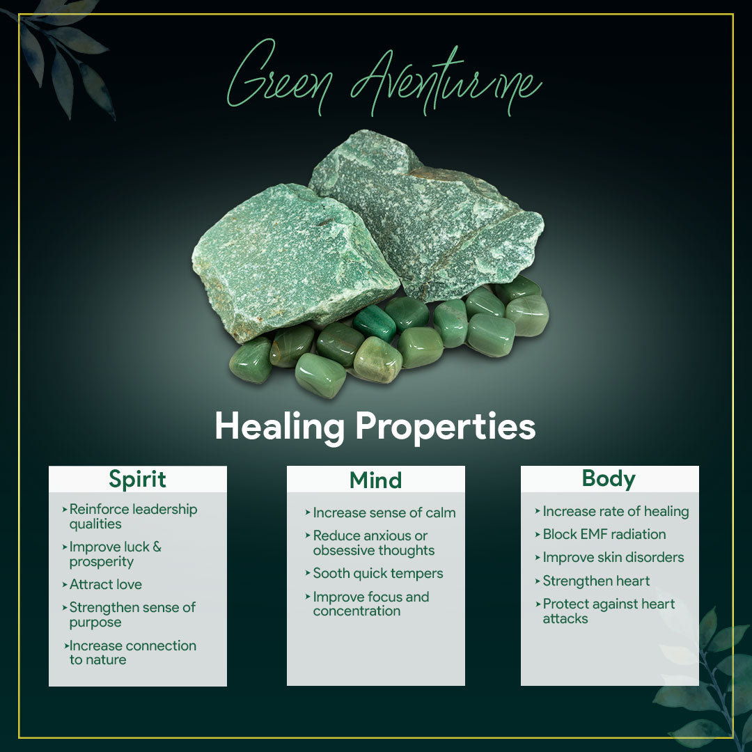 Green Aventurine is a variety of quartz characterized by its green color, which is typically due to the presence minerals such as chlorite within the stone. Green Aventurine often exhibits a shimmering or sparkling effect known as aventurescence, caused by reflective inclusions of mica or other minerals.