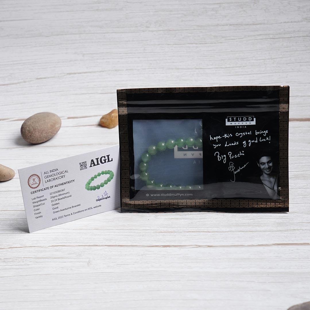 Embrace positivity and serenity with our latest addition, the Green Aventurine Bracelet. Known as the Stone of Heaven, this green-colored round beaded bracelet is believed to usher in luck, fortune, and prosperity. Moreover, it promotes emotional balance and enhances the immune system, fostering a sense of well-being and balance in your life.