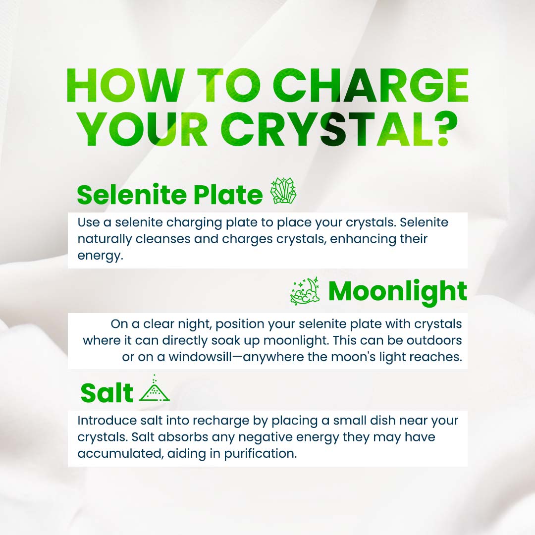 Recharge: The best way to do that is to keep them in a place that gets moonlight, overnight. You can also put the crystal in salt overnight.