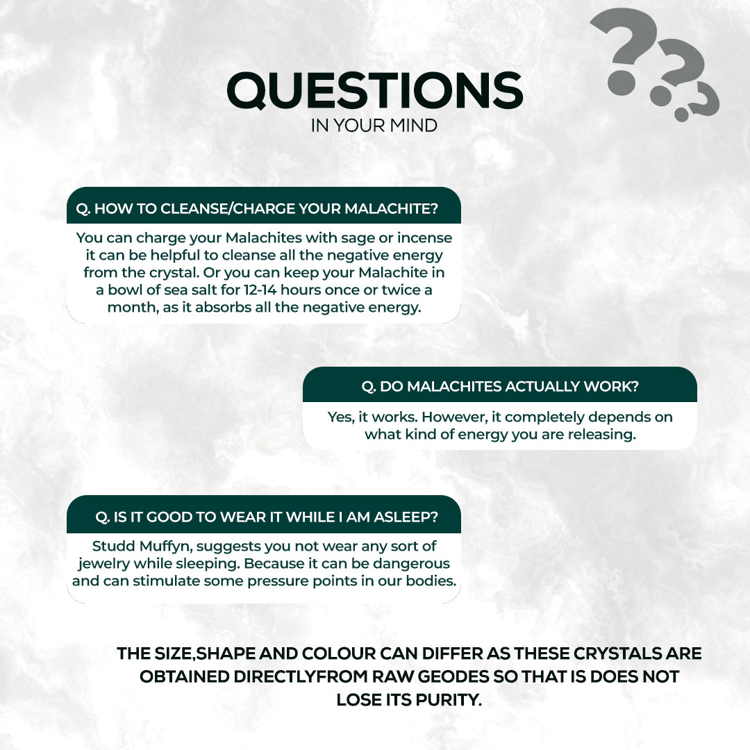 Malachite is believed to promote physical healing, increase energy levels, stimulate creativity, and enhance spiritual development. It is a popular stone in the world of metaphysics and spirituality due to its believed healing properties.