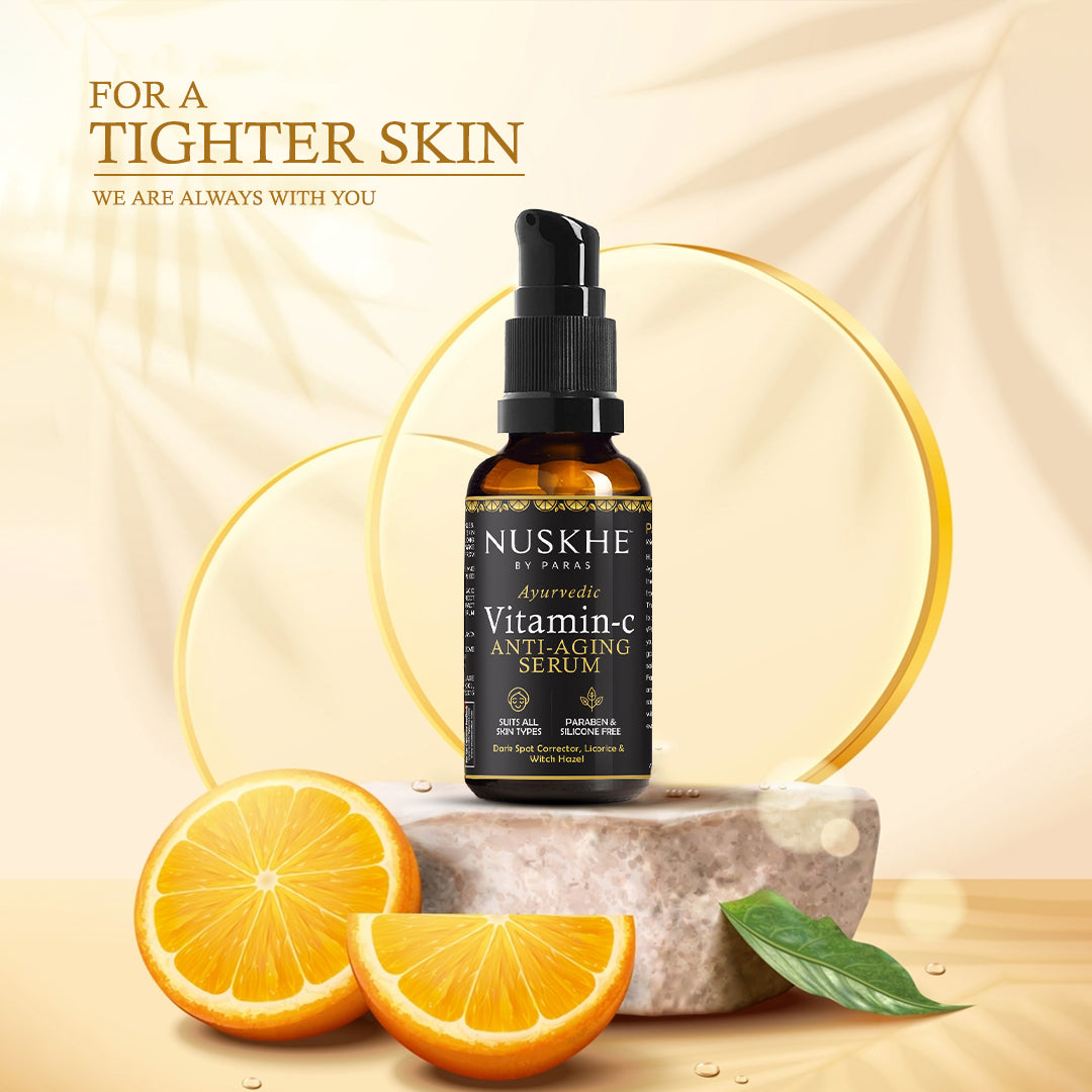 Our Vitamin C Skin Serum Covers open Pores, Wrinkles, Blemishes, and Pigmentation, Gives Glow and Shine to Face Skin, Especially Dark & Dull Skin, Gives Smooth, Fine & Classic Long Lasting Makeup -prevents Skin From Harmful Effects of Makeup-Chemicals, Contains SPF-20, Which Prevents Our Skin From Harmful UV Rays, Flawless, ageless skin, This Nuskhe By Paras Ayurvedic Anti Aging Serum is our favorite and most powerful age-defying solution yet. Use this elixir once before bed at night to preserve youthful skin and wake up with a radiant glow