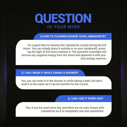 You can cleanse the Labradorite Crystal during the full moon. You can simply place it outside, ensuring the light of the moon reaches it. The powerful moonlight will remove any negative energy from the stone and replenish it with positive energy reserves.