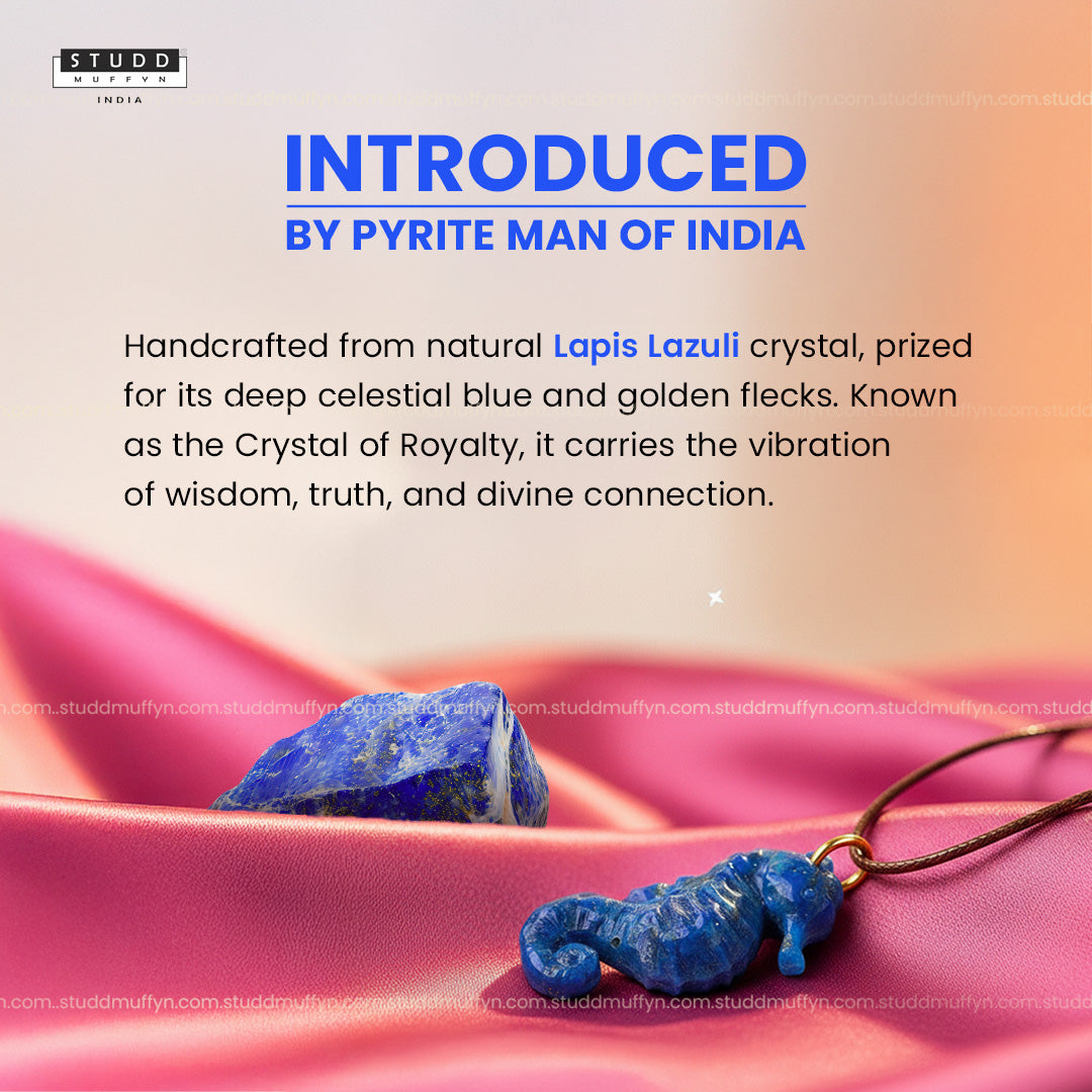 Inspired by the tranquil spirit of the ocean, the Lapis Lazuli Seahorse Pendant is a fusion of serenity and strength. The seahorse, known for its grace and resilience, embodies emotional balance and gentle power — while the Lapis Lazuli crystal enhances wisdom, truth, and inner peace.