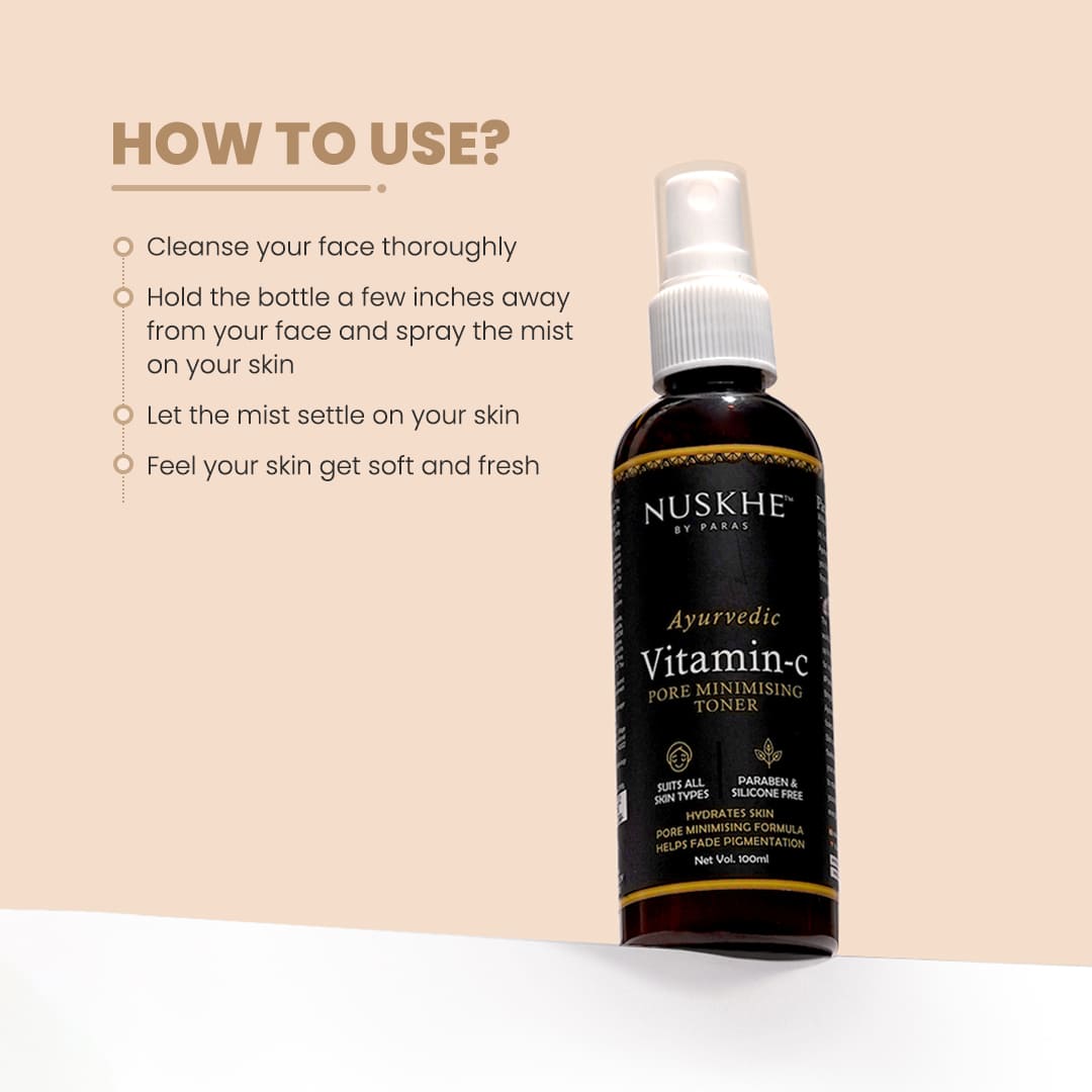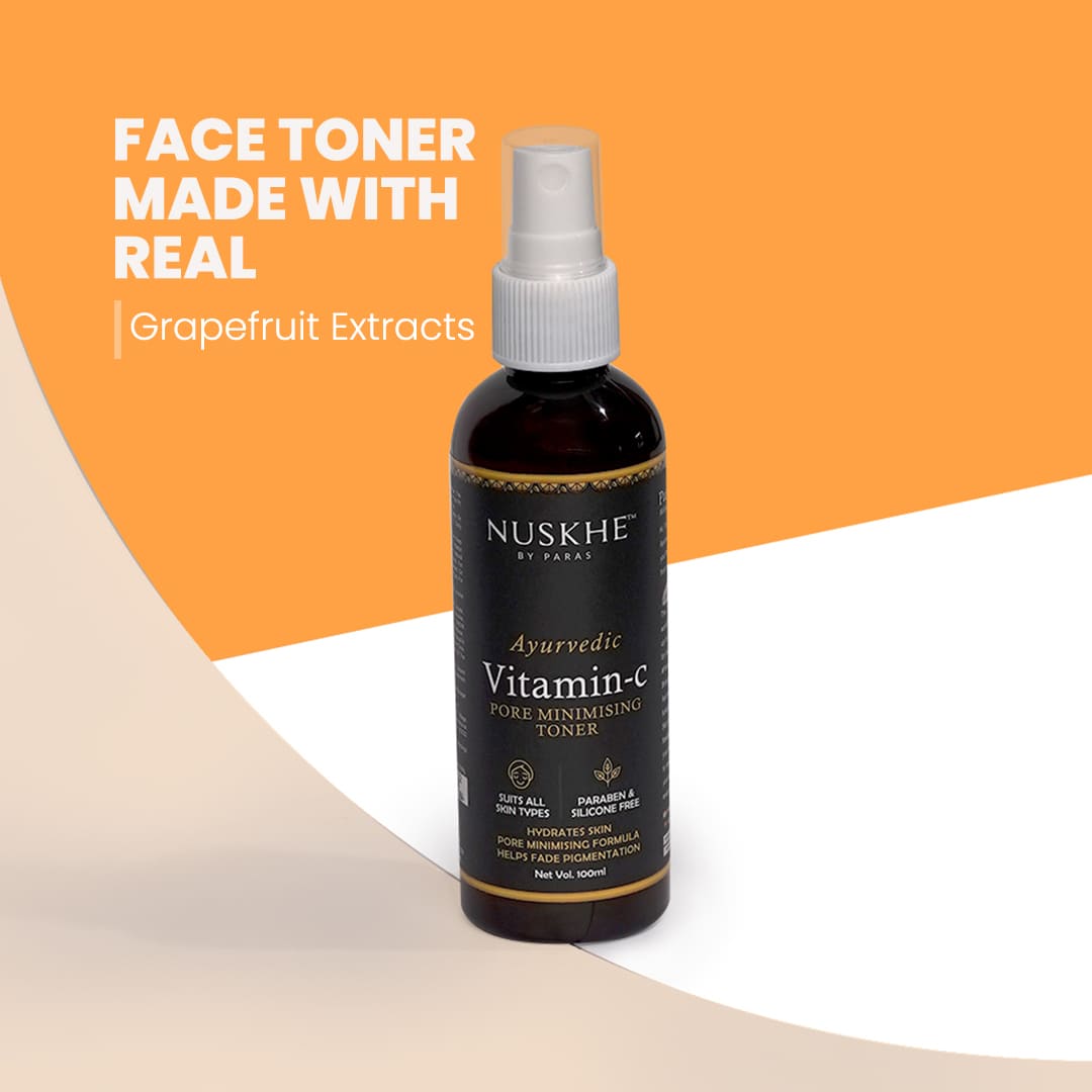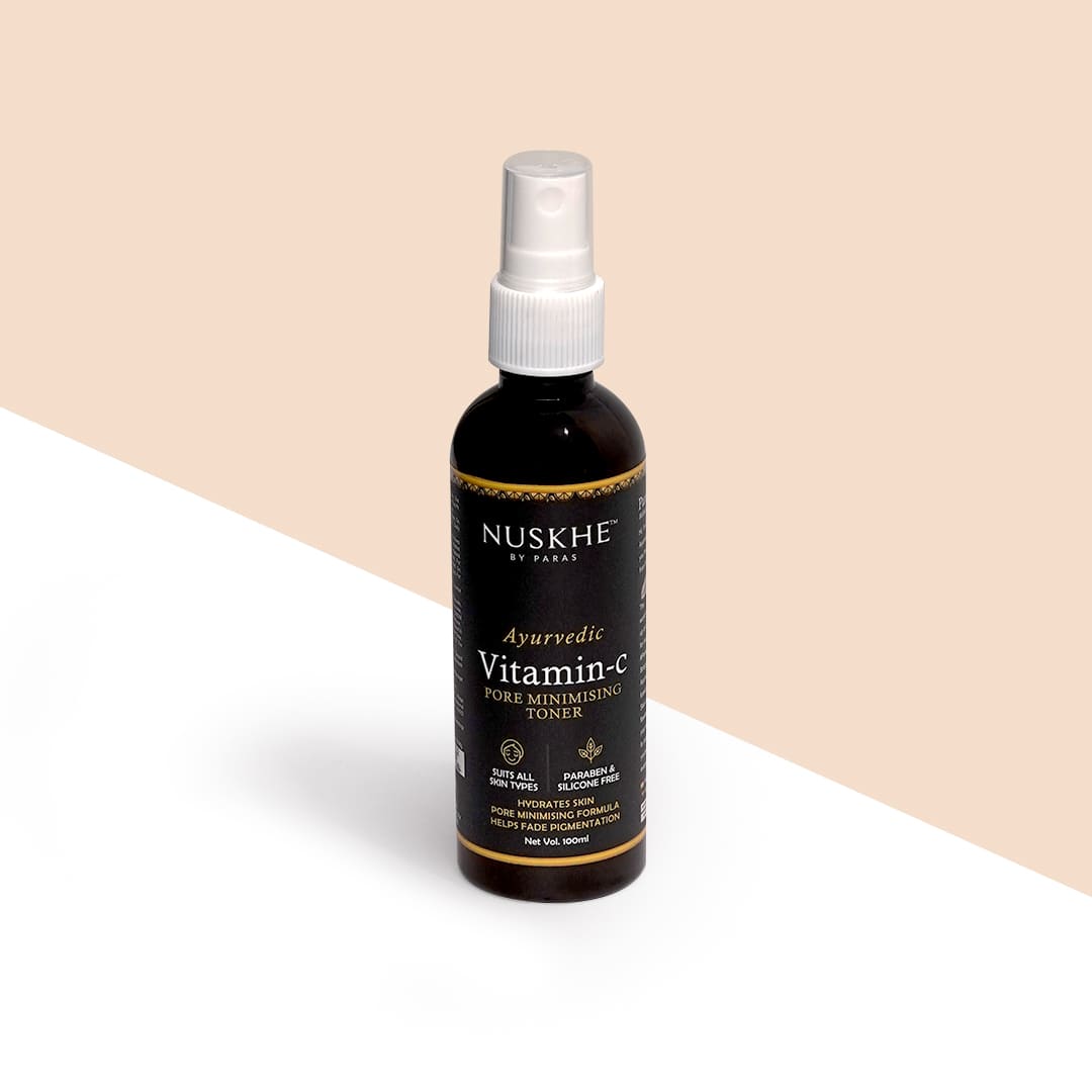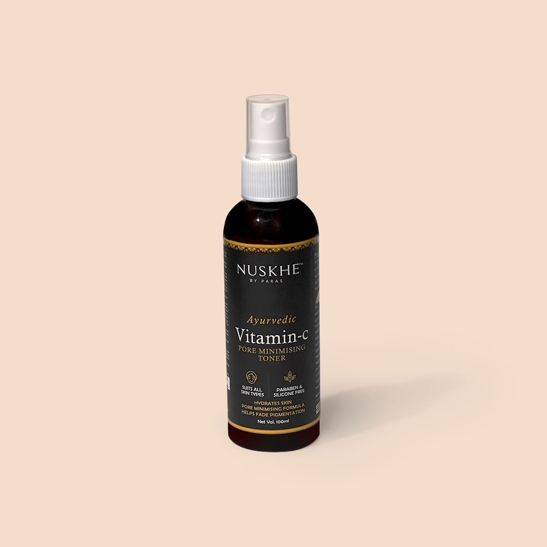 Consider Nuskhe by Paras Ayurvedic Vitamin-C Pore Minimizing Toner a Suraksha Kawach for your skin! This is a vitamin C-rich powerhouse that your skin will appreciate! This will replenish your skin's nutrition and aids to restore its PH balance.