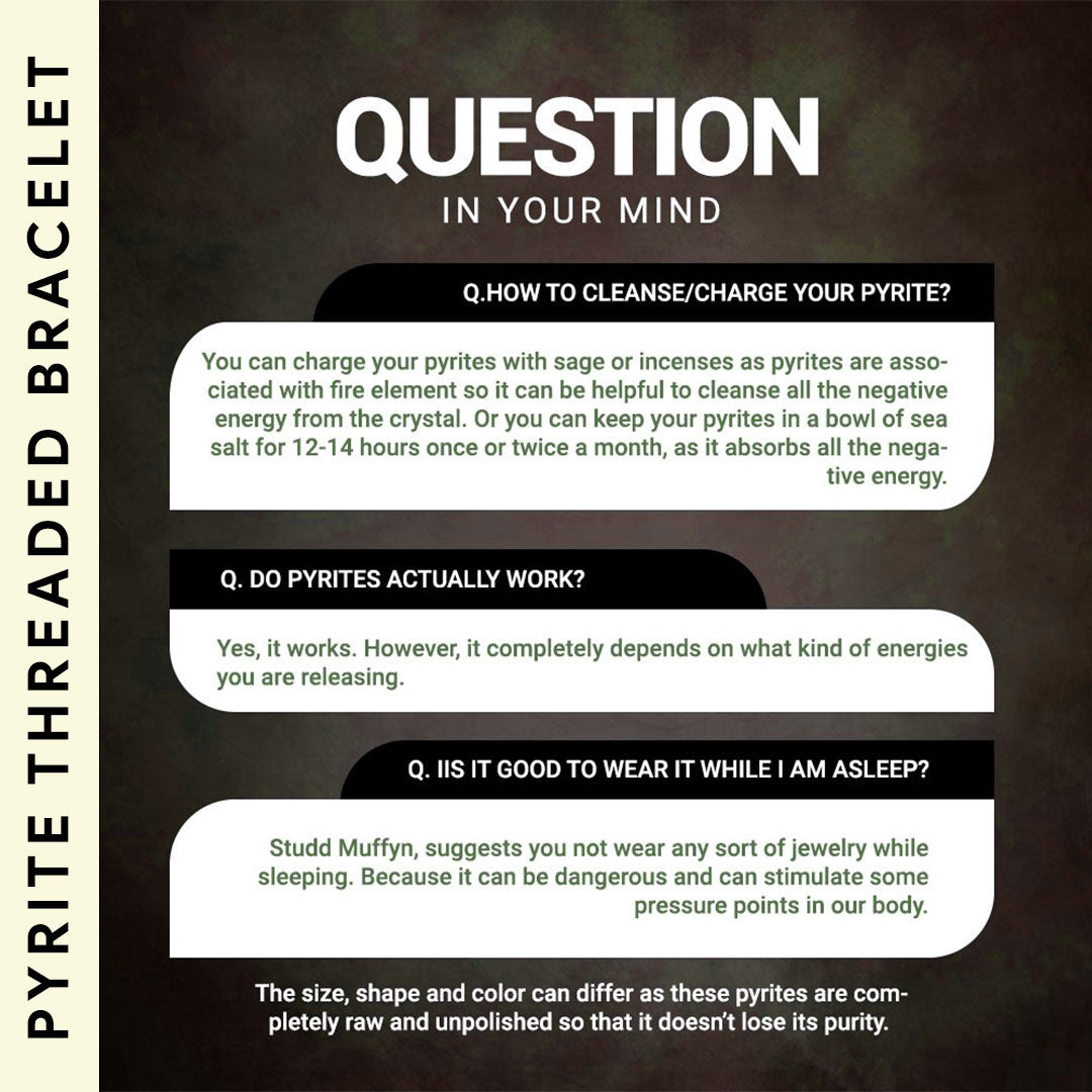 NOTE: The pyrite jewels on our website are completely natural and raw because we don't polish the crystals so that they can create a barrier against negative energies and promote pure physical and spiritual healing.