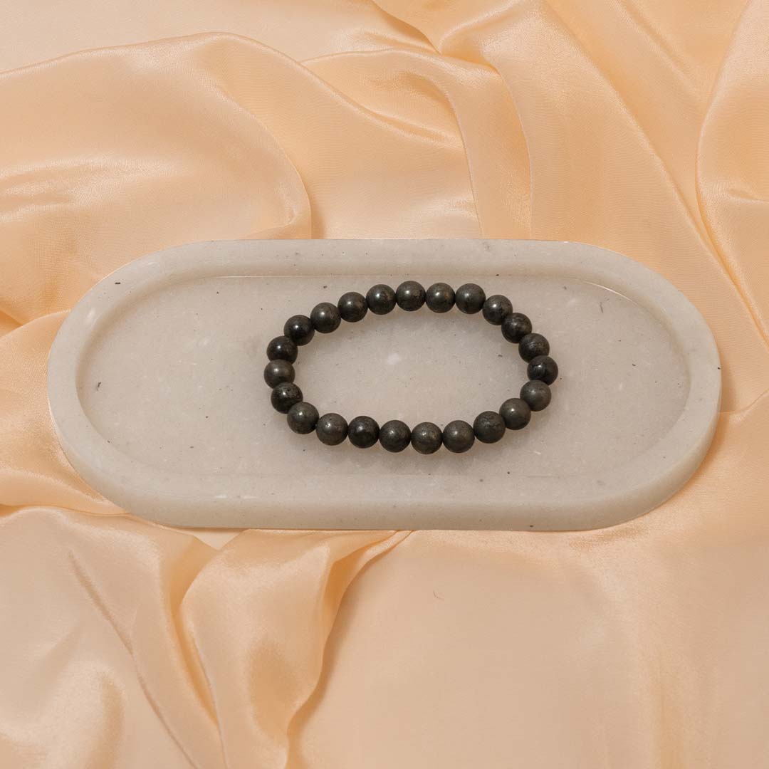 Pyrite Bracelet - Mostly pyrite is known for its frequency of attracting abundance and wealth. Pyrite attracts money, it’s known to be a money magnet. According to Crystal Healing, having this crystal with you attracts wealth and fame. Pyrite has a connection to the solar plexus chakra and is used to increase strength, energy, willpower, and confidence.