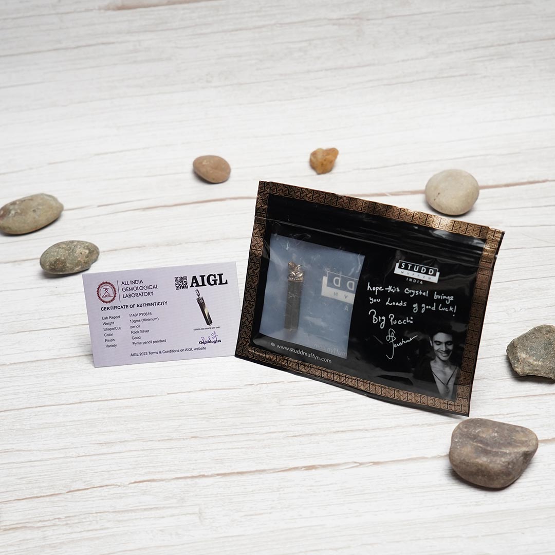 Unleash Your Inner Money Magnet with the Authentic Pyrite Crystal Pencil Pendant.
