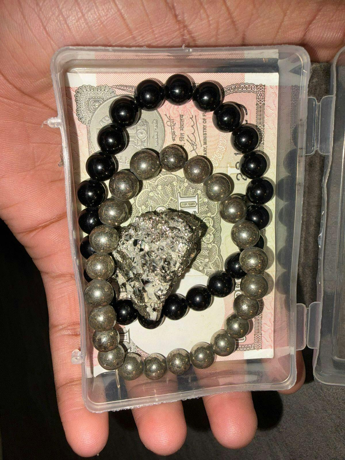 Black Obsidian is a powerful crystal that acts as a guardian, shielding you from negativity and cleansing your energetic space whereas Pyrite, often called the "money magnet" is your key to attracting wealth and prosperity. It's not just about financial success; Pyrite also invites fame and overall success into your life.