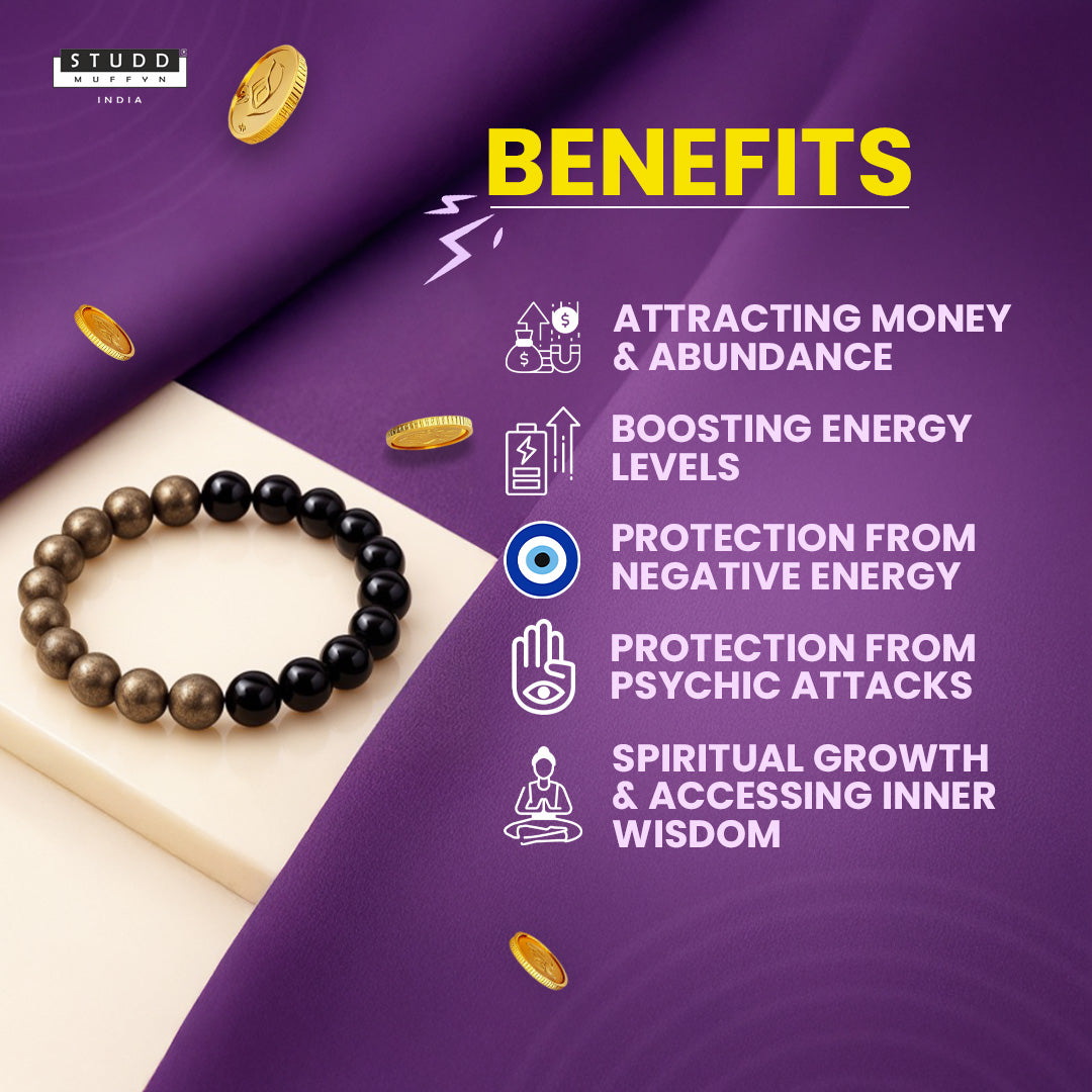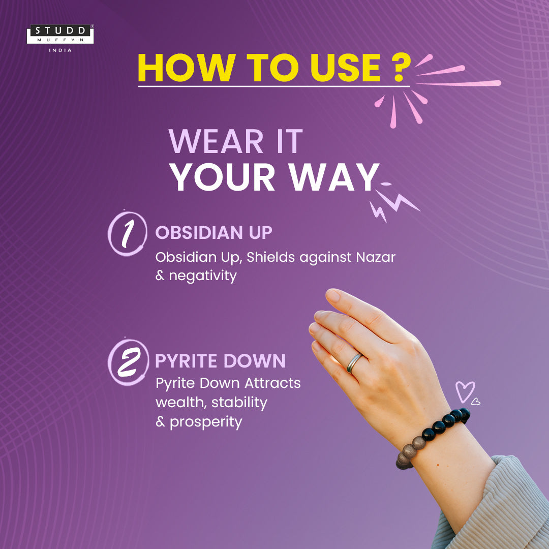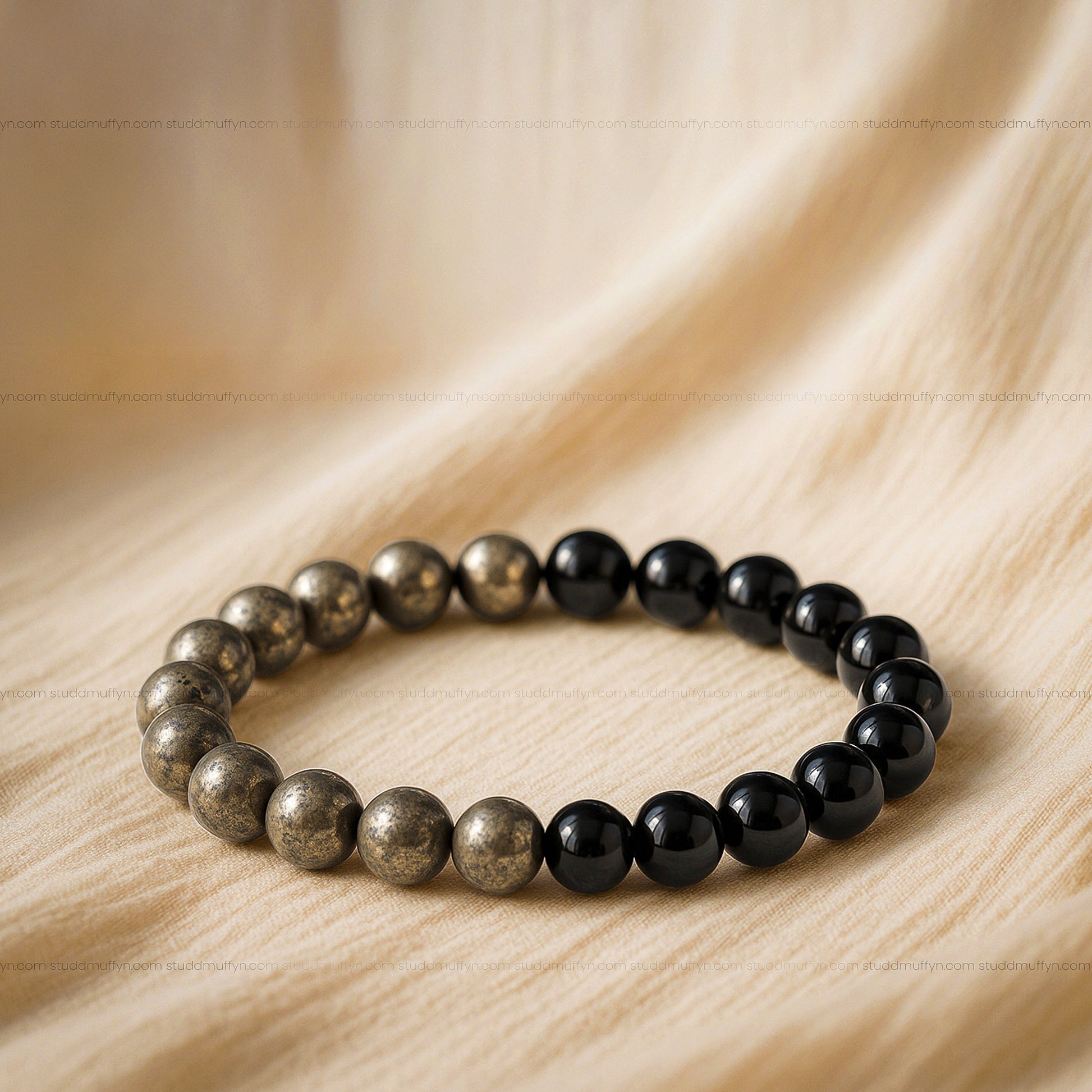 Two-in-One Power – A first-of-its-kind bracelet that blends Obsidian (protection) with Pyrite (prosperity).