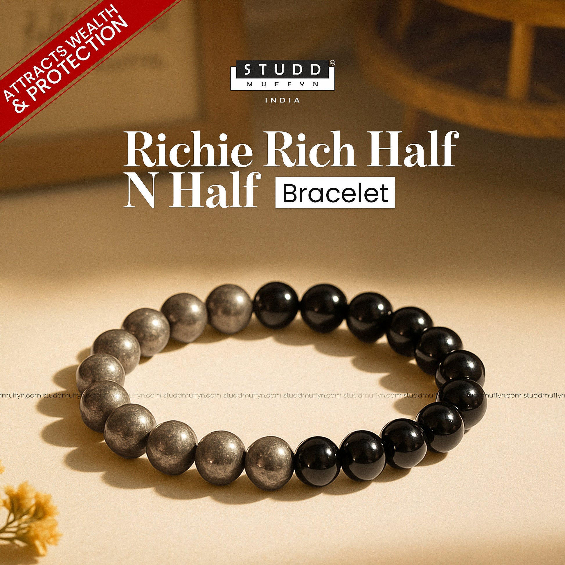 Studd Muffyn presents the Riche Rich Bracelet, a powerful combination of Obsidian + Pyrite beads designed to bring you double the energy in one stunning piece of jewelry.