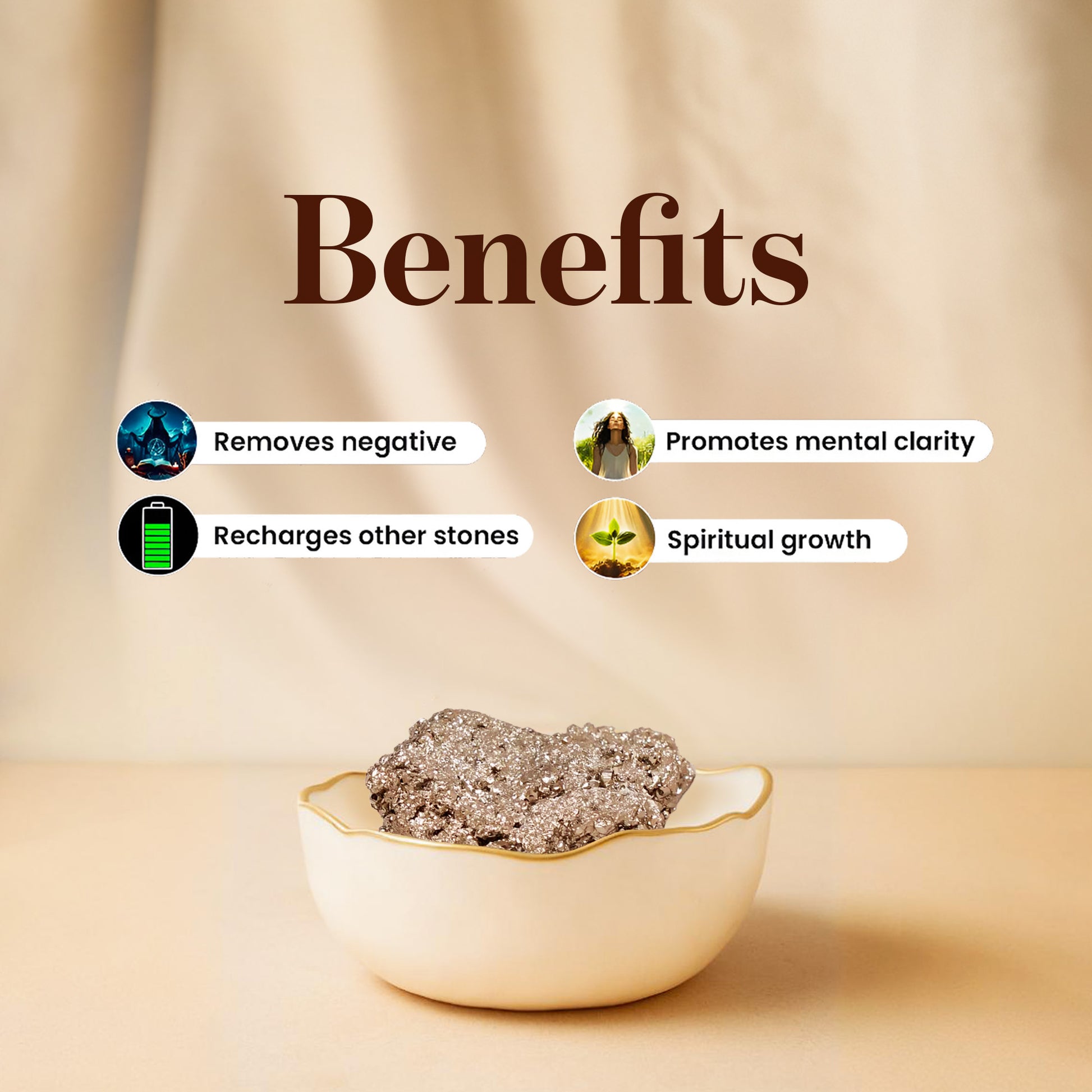 Known for its purifying properties, selenite is one of the few crystals that can cleanse both itself and other stones. Paired with pyrite, the "money magnet," this bowl becomes a powerful tool for attracting wealth and abundance.