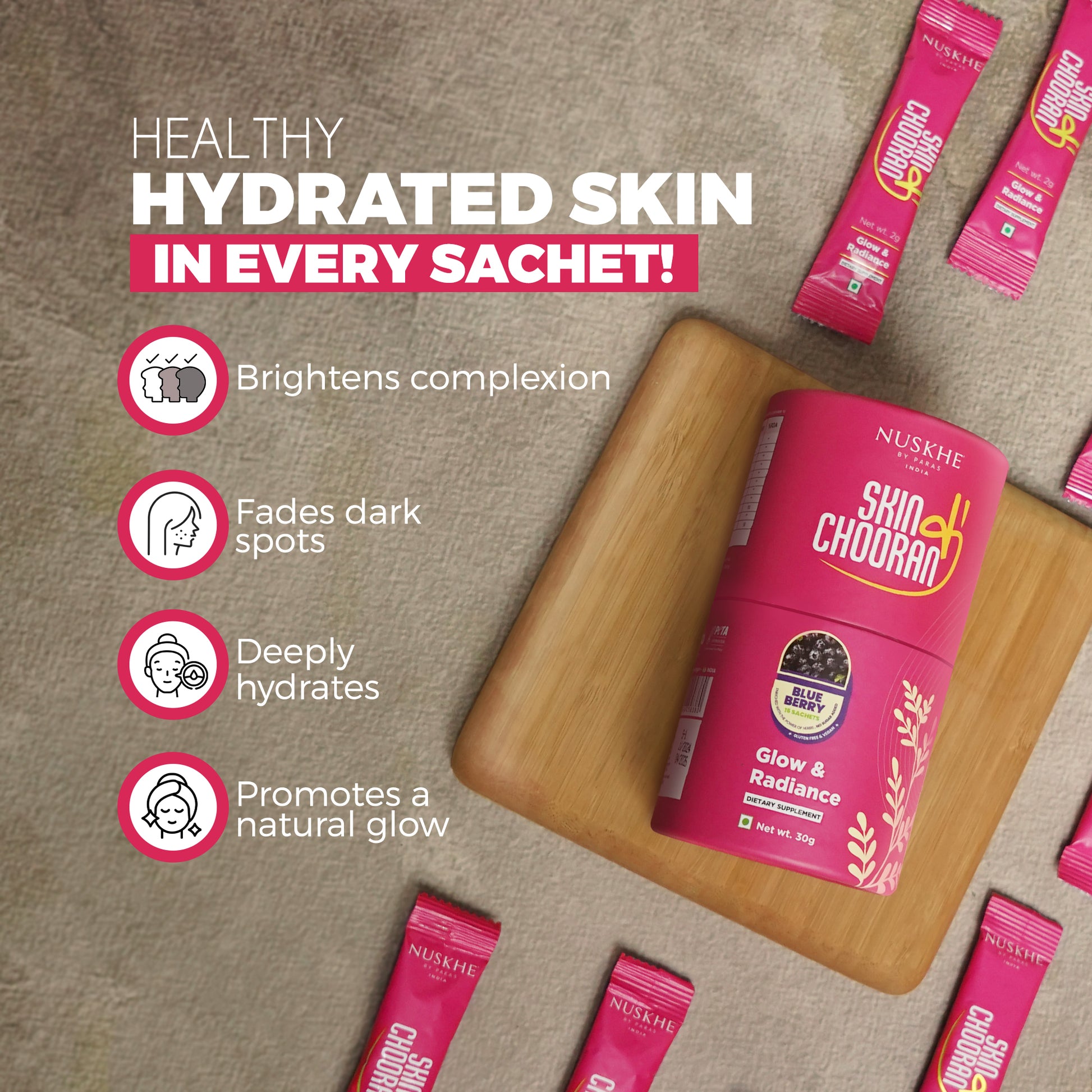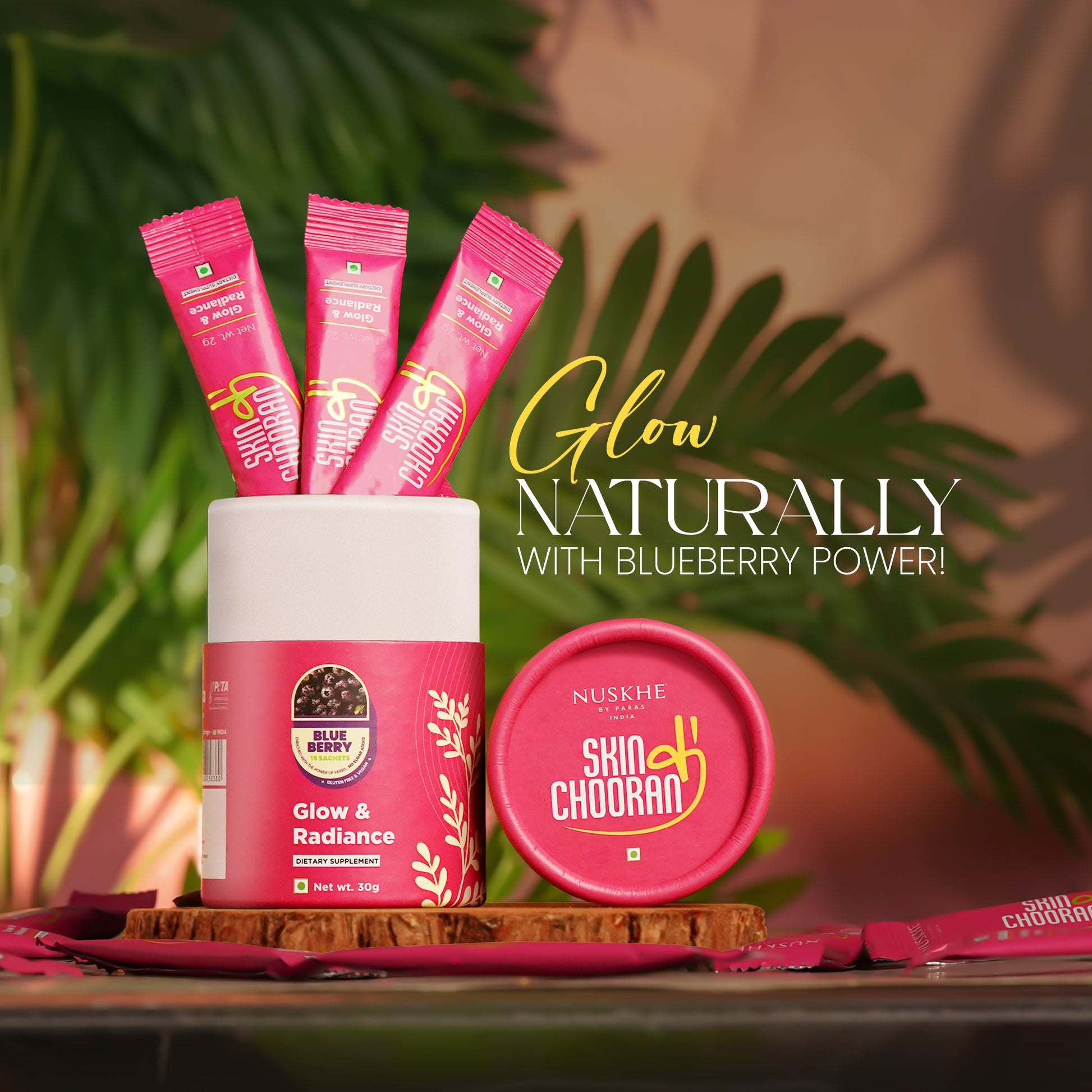 Transform dull skin into a glowing complexion with our innovative Skin Ka Chooraan powdered sachets. Specially formulated with the goodness of blueberry, this unique blend is designed to nourish, hydrate, and brighten your skin naturally.