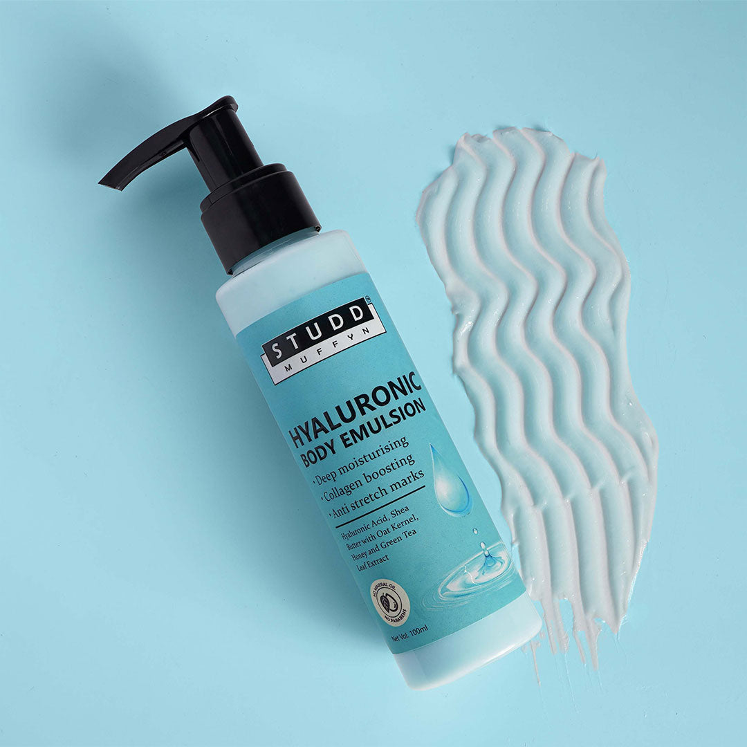 Your body needs love. To retain its elasticity, youth and tightness. The Studd Muffyn Hyaluronic body emulsion works at your skin's cellular level to give you deep hydration, softness and radiance. ✻ NOTE:- People with sensitive skin are advised to perform a patch test. If a rash, redness, or itching appears, stop using it. Customer Care at +91-78600 00768, available from 10 AM to 6 PM (Monday to Saturday) |
