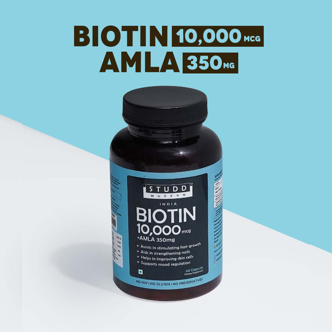 It promotes hair growth and prevents hair loss. Studd Muffyn Biotin Capsules for hair growth are exquisitely crafted which may helps in regulating the biotin levels in the body which helps in the healthy growth and maintenance of hair, skin, and nails.
