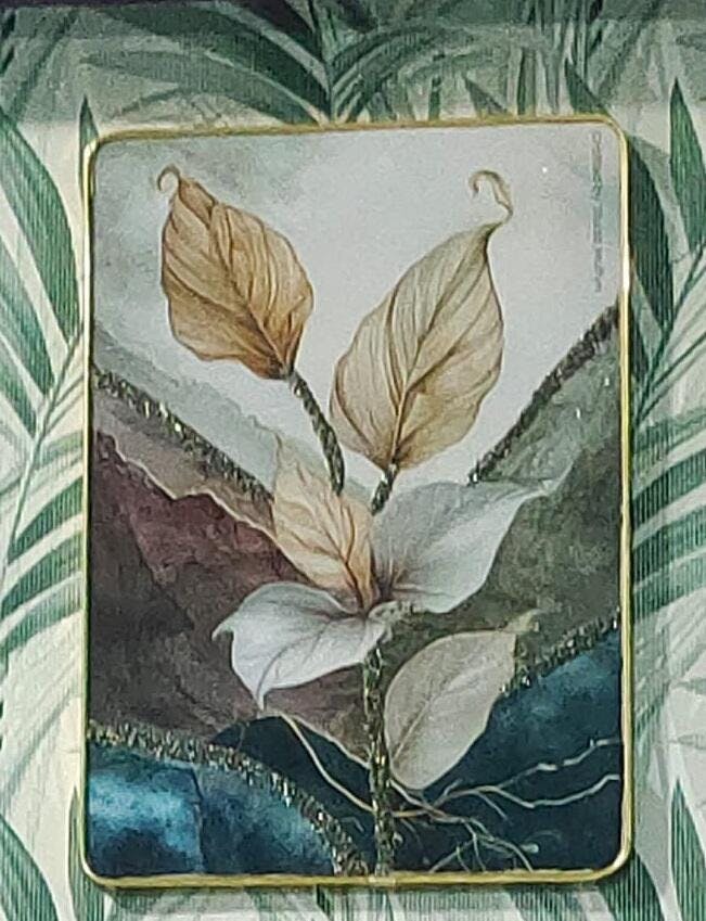 Adorned with natural pyrite crystals, this artwork isn’t just beautiful — it’s energetically abundant. The flowering pot design represents continuous growth and prosperity, reminding you to stay rooted while reaching for your highest self.