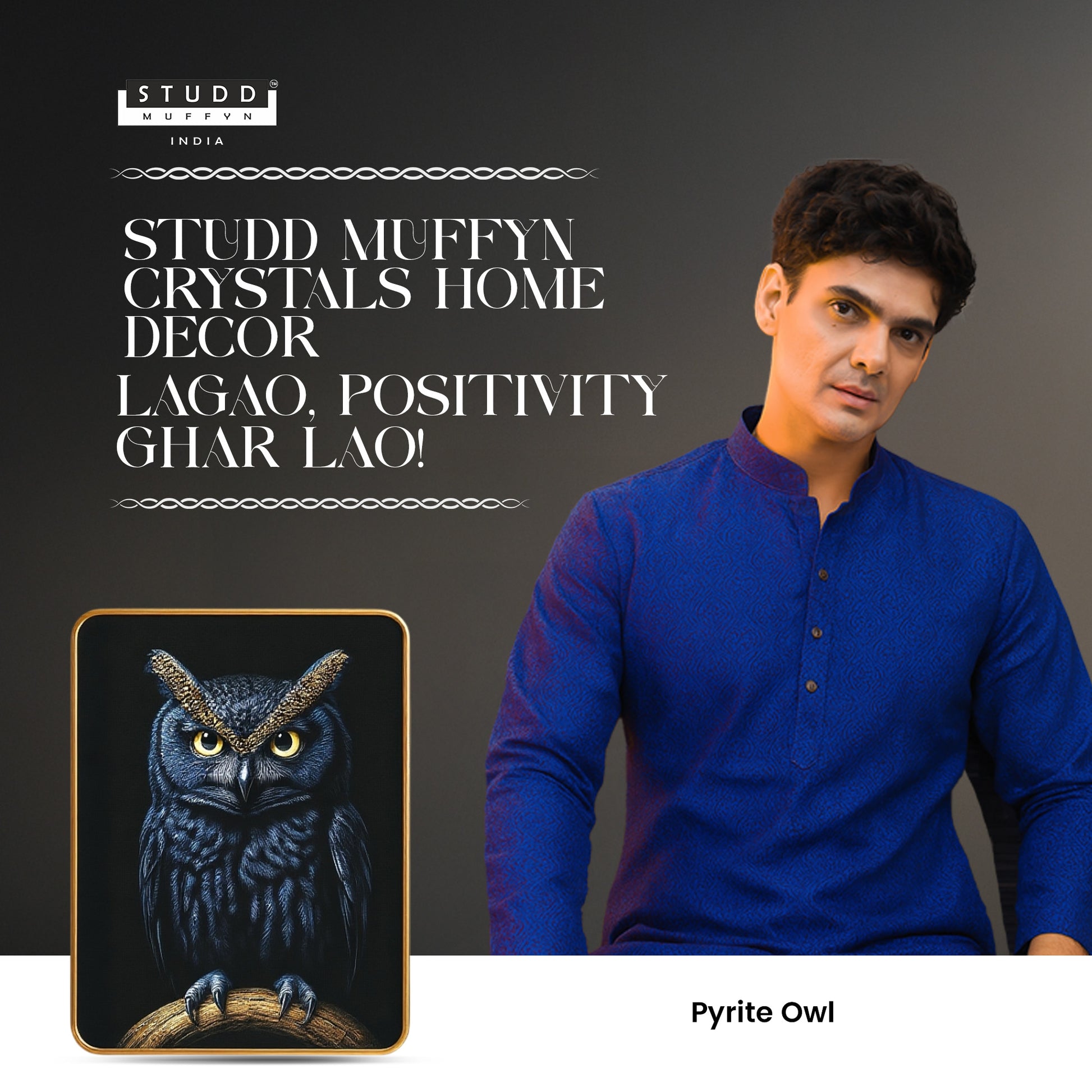 Summon the wisdom of the ages and the wealth of the Earth into your space with Pyrite Owl – a captivating piece from the Studd Muffyn Crystal Safari, under the Studd Muffyn Crystal Homes Series. This majestic owl, rendered in rich detail and thoughtful design, stands as a symbol of intuition, insight, and ancient knowing.