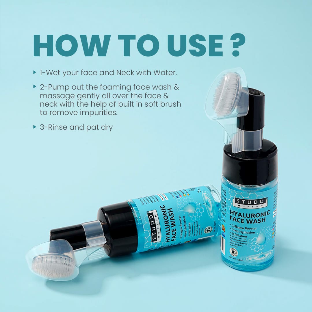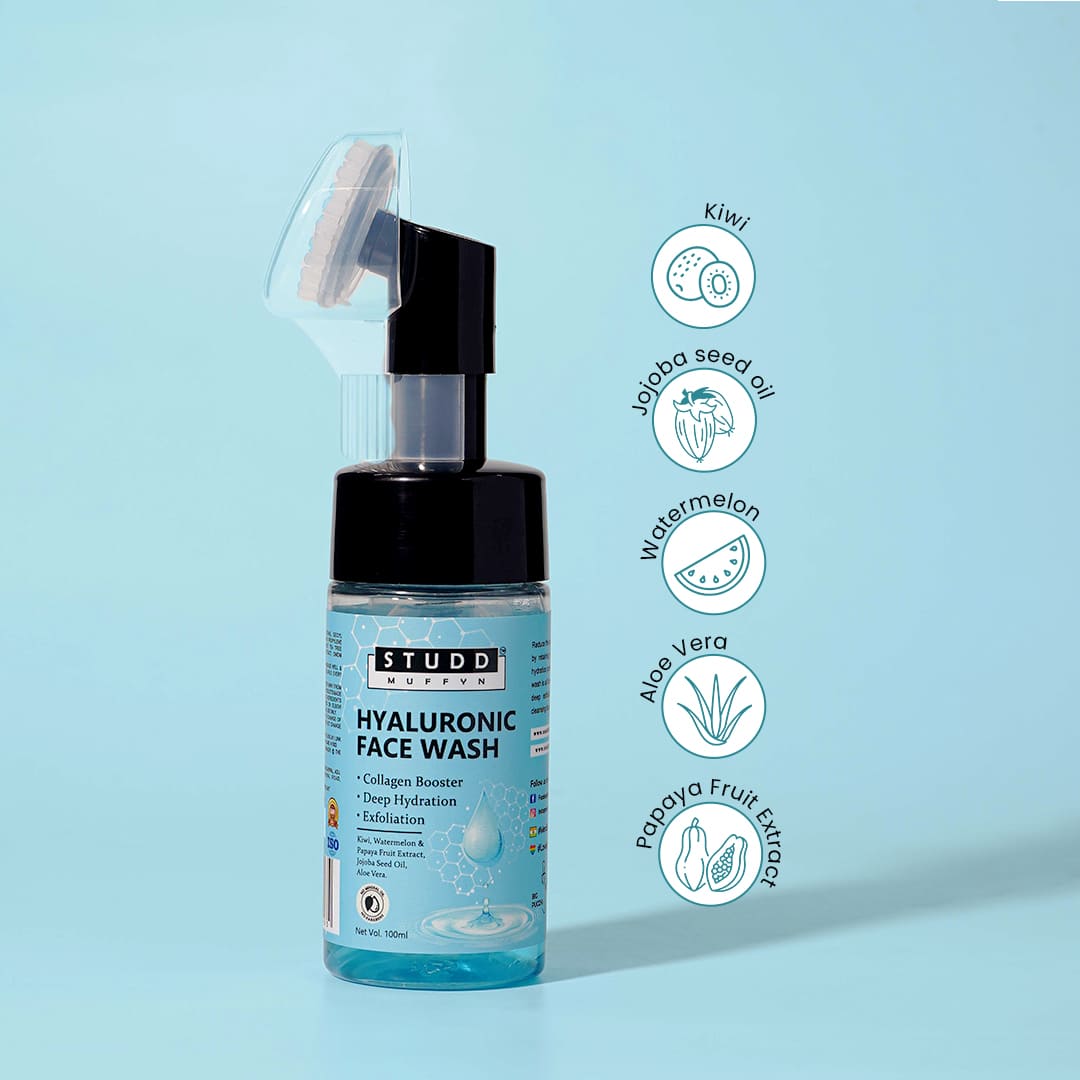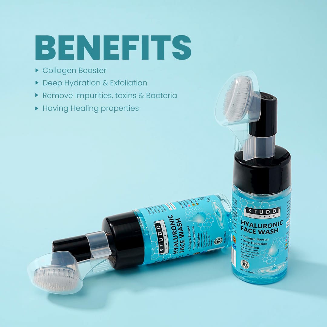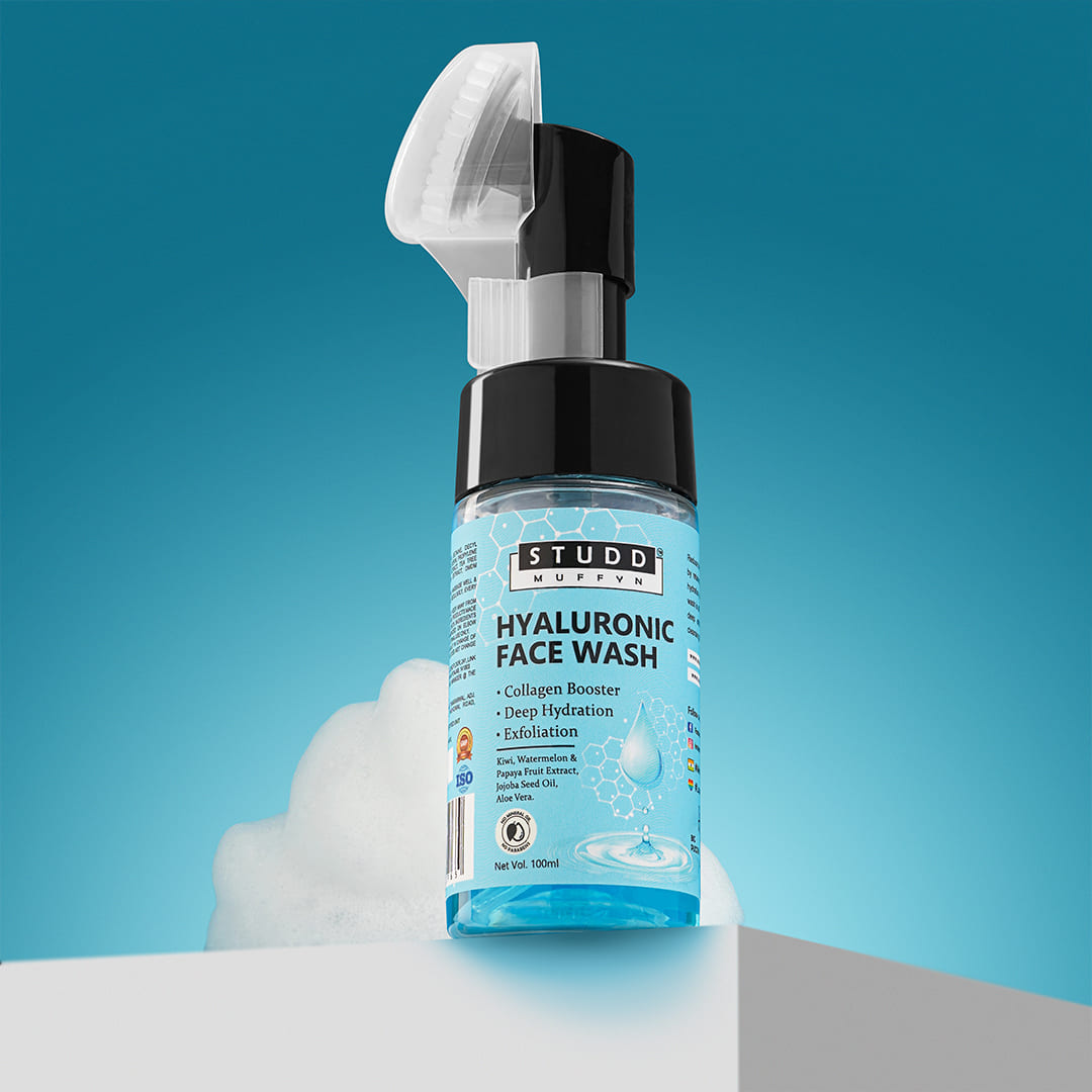 Keep your skin hydrated and rejuvenated so that it looks and feels smooth and soft with Studd Muffyn Hyaluronic Foaming Face Wash.