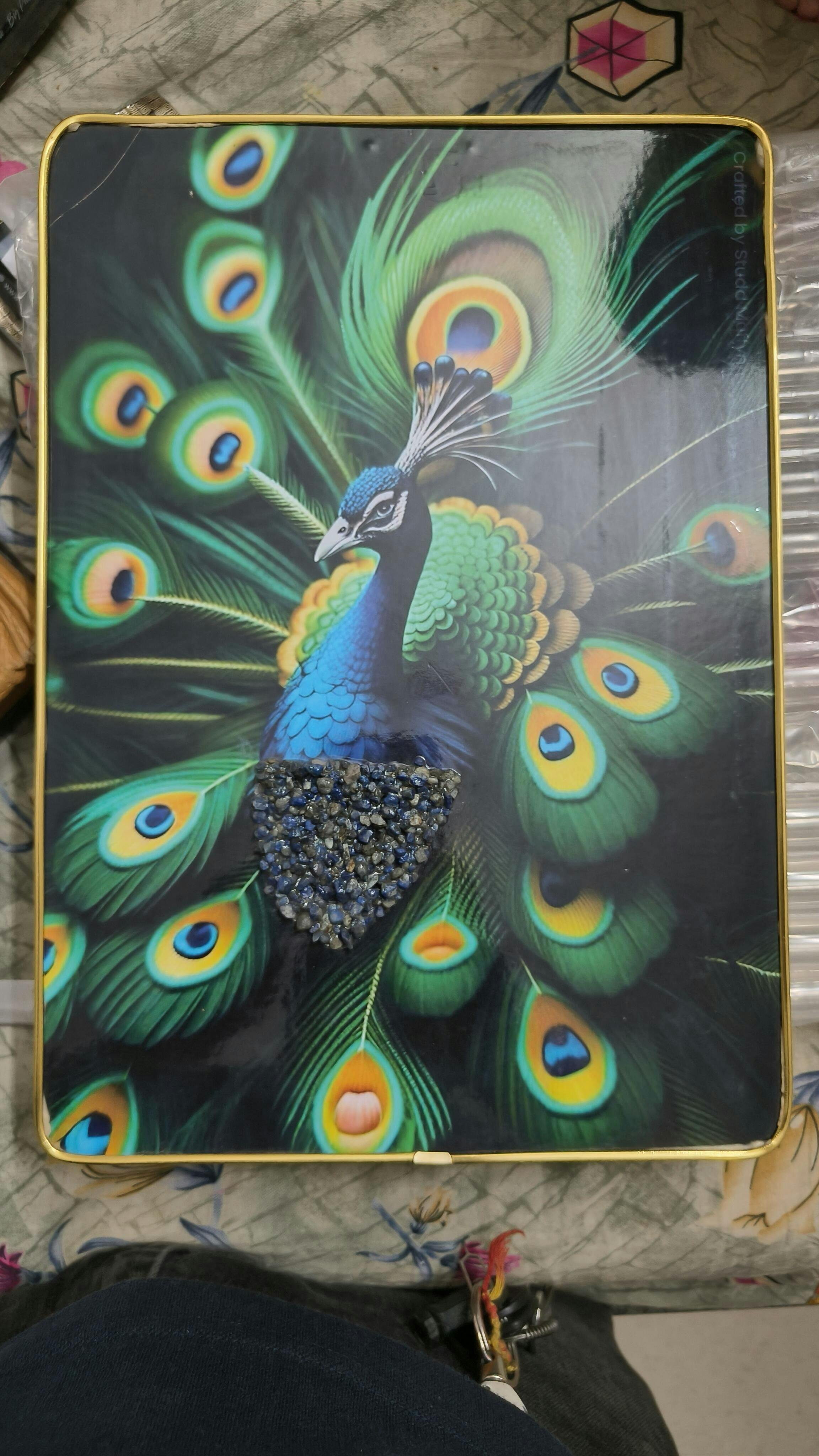 Featuring the majestic peacock — a symbol of renewal, protection, and spiritual insight — this framed collectible is adorned with genuine Lapis Lazuli crystal fragments. Known as the Crystal of Royalty, Lapis Lazuli enhances self-expression, sharpens intuition, and awakens inner truth.