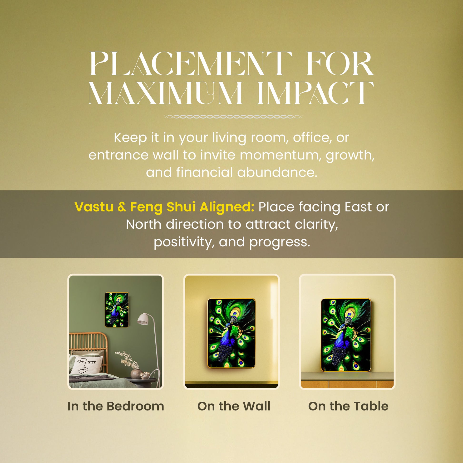 With its vivid blues and gold-flecked beauty, this artwork not only elevates your wall — it uplifts your aura. The peacock’s poised presence becomes a daily reminder of self-confidence, clarity, and awakening.