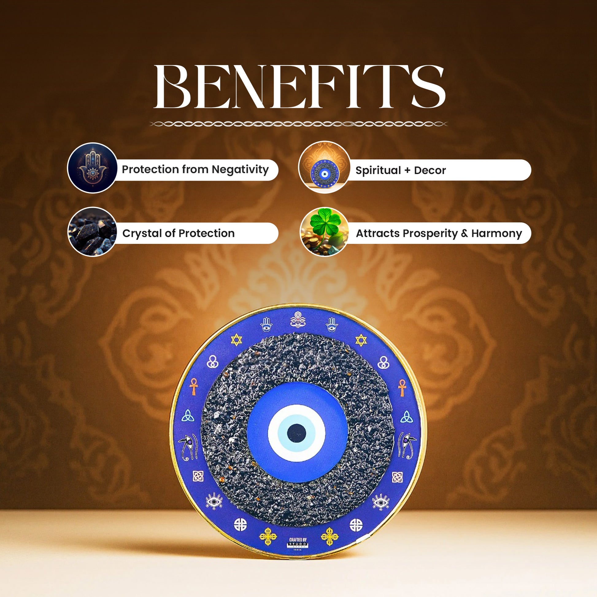 Guard your home and spirit with the powerful Obsidian Evil Eye Plate – a unique blend of ancient symbolism and natural crystal energy. At its heart lies the Evil Eye, a timeless emblem believed to shield against buri nazar and negative vibrations. Surrounding it is a strong layer of authentic Obsidian crystal, revered as the “Crystal of Protection” for its ability to absorb negativity and create a protective shield of energy.