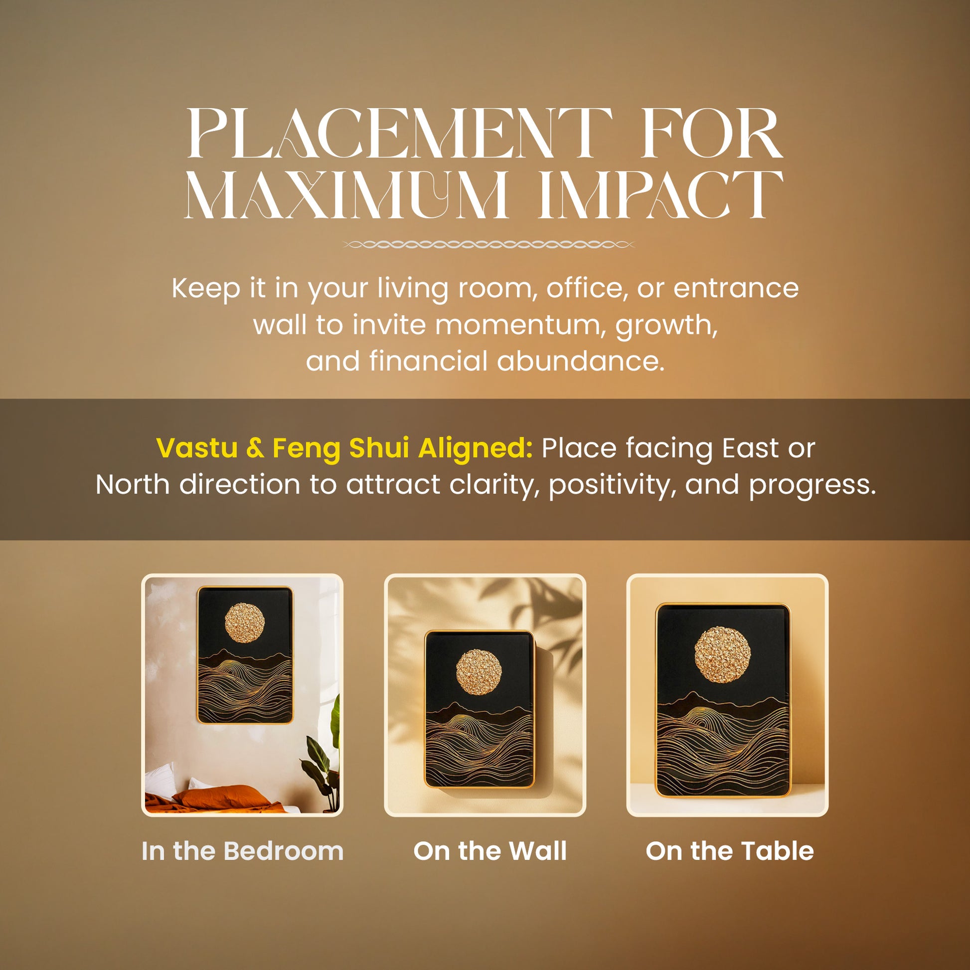 Place this artwork in your workspace, meditation corner, or hallway to attract success, uplift your spirit, and align your energy with abundance — every night and every dawn.