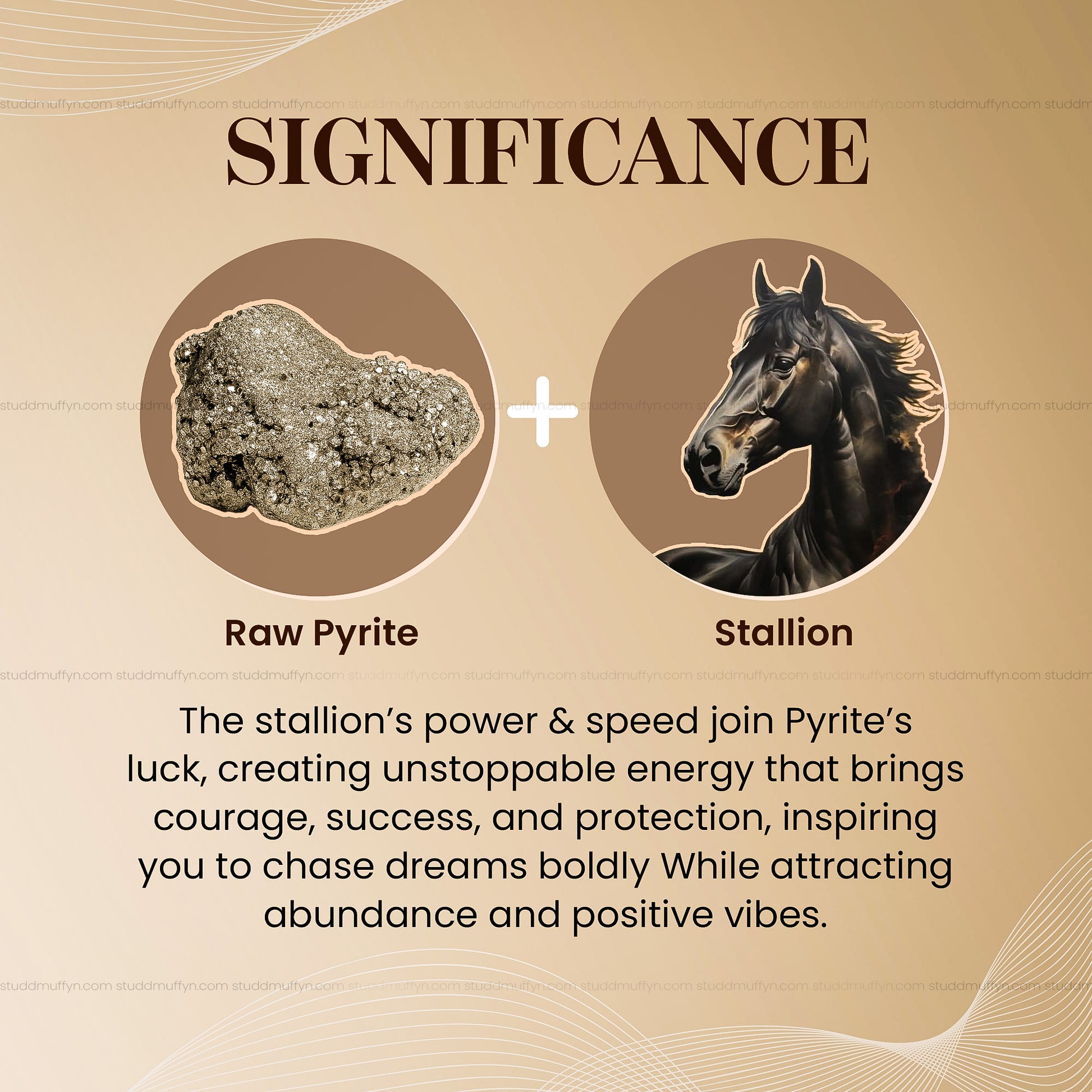 Unleash your inner force with the Pyrite Stallion — a majestic creation from the Studd Muffyn Crystal Safari collection, part of the elite Studd Muffyn Crystal Homes Series.