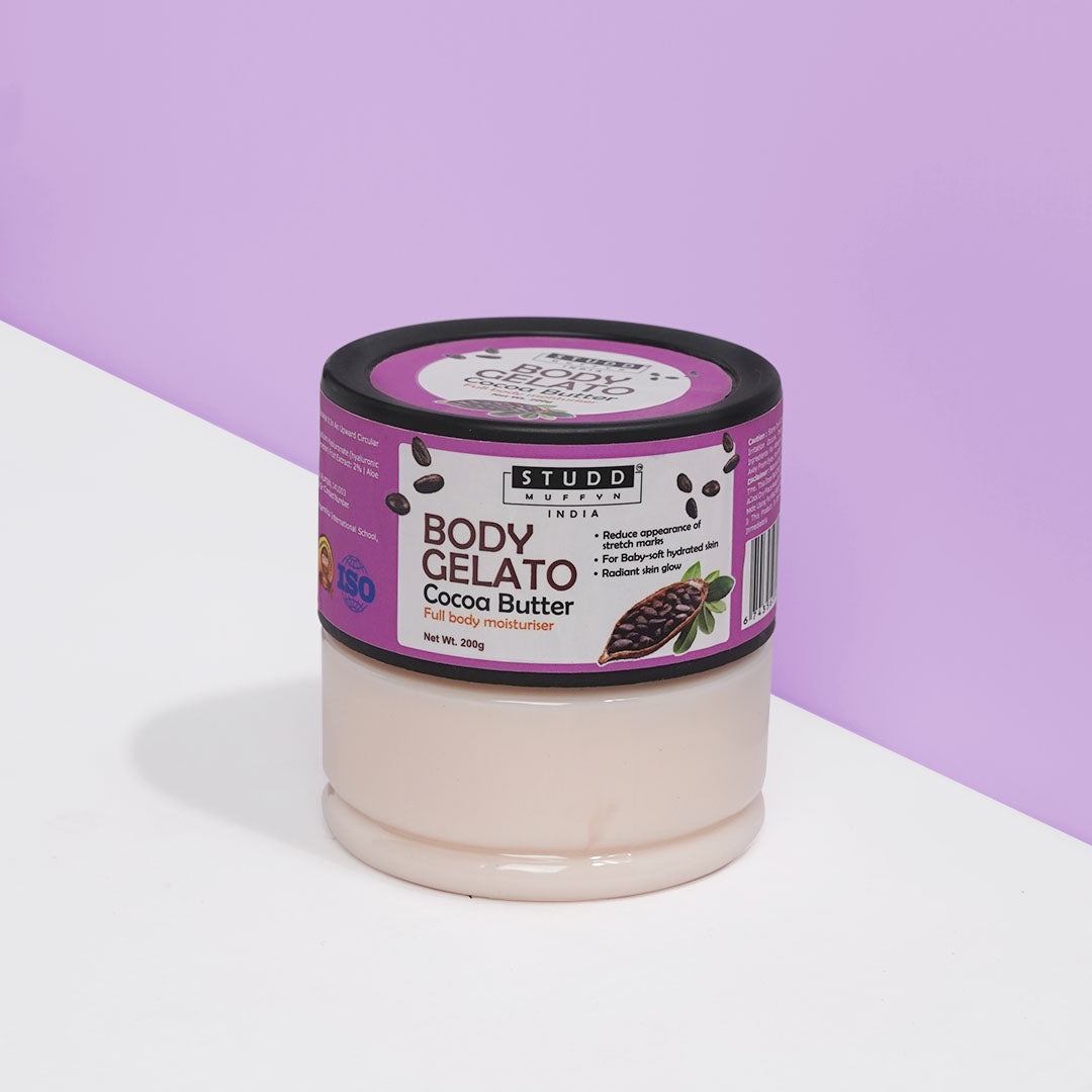 Studd Muffyn's Body Gelato is a full-body moisturizer that will leave your skin feeling hydrated and looking radiant. This gelato is formulated with cocoa butter, which is a natural moisturizer. It helps to hydrate and nourish the skin. It is helpful in reducing the appearance of stretch marks and prevents aging of skin. Cocoa Butter is efficient in reducing the appearance of scars on the skin. Moreover it aids in reducing inflammation of the skin.