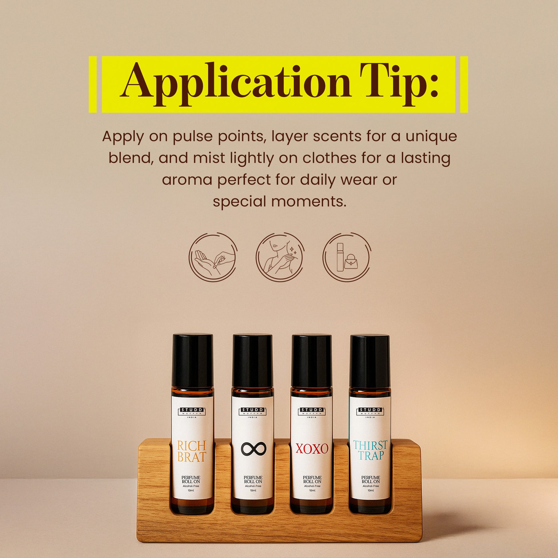 👤 Pulse Points – Dab gently on wrists, behind ears, neck, or inner elbows for a lasting effect.