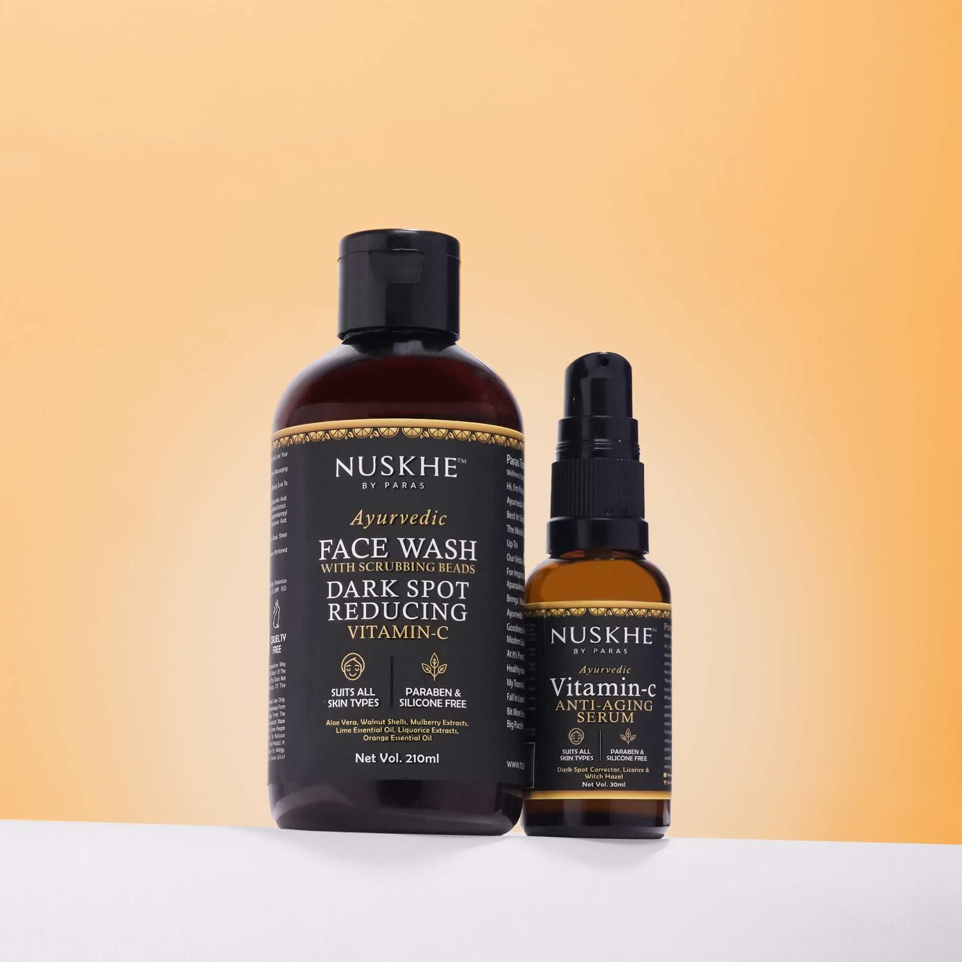 Nuskhe By Paras Vitamin C Serum helps in providing coverage for open pores, wrinkles, blemishes, and pigmentation. Gives face skin a glow and shine, especially dark and dull skin. Gives Smooth, Fine, and Classic Long-Lasting Makeup -protects Skin From Harmful Makeup Effects-Chemicals. SPF-20 and The scrubbing beads in Nuskhe By Paras Vitamin C Face Wash is wonderful for exfoliating, and the Vitamin C is great for energized and youthful skin, as well as reducing dark spots. |